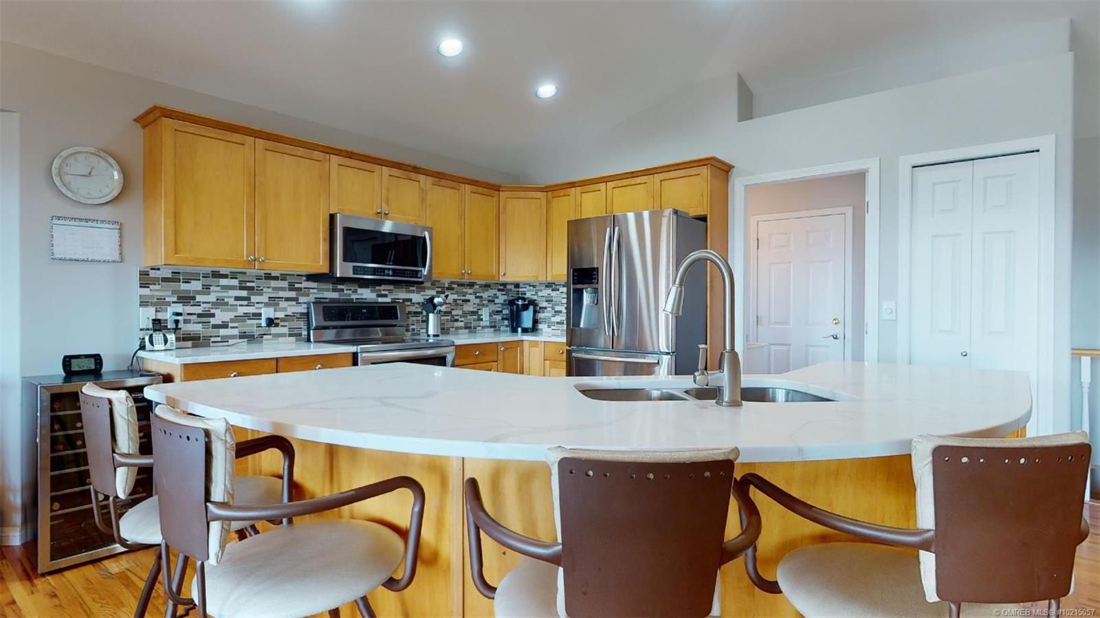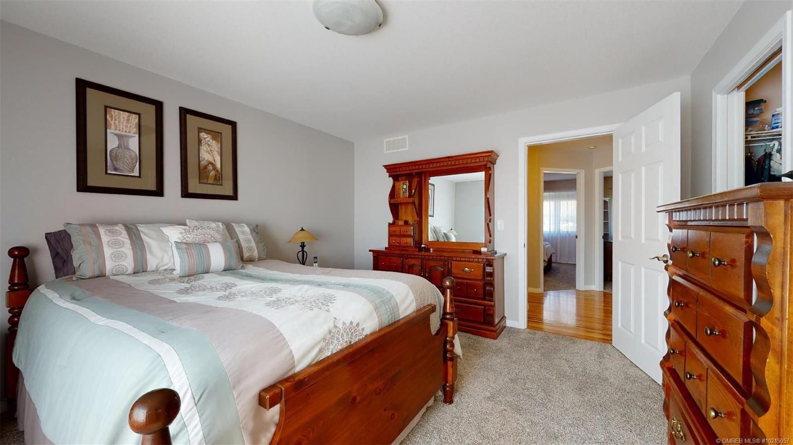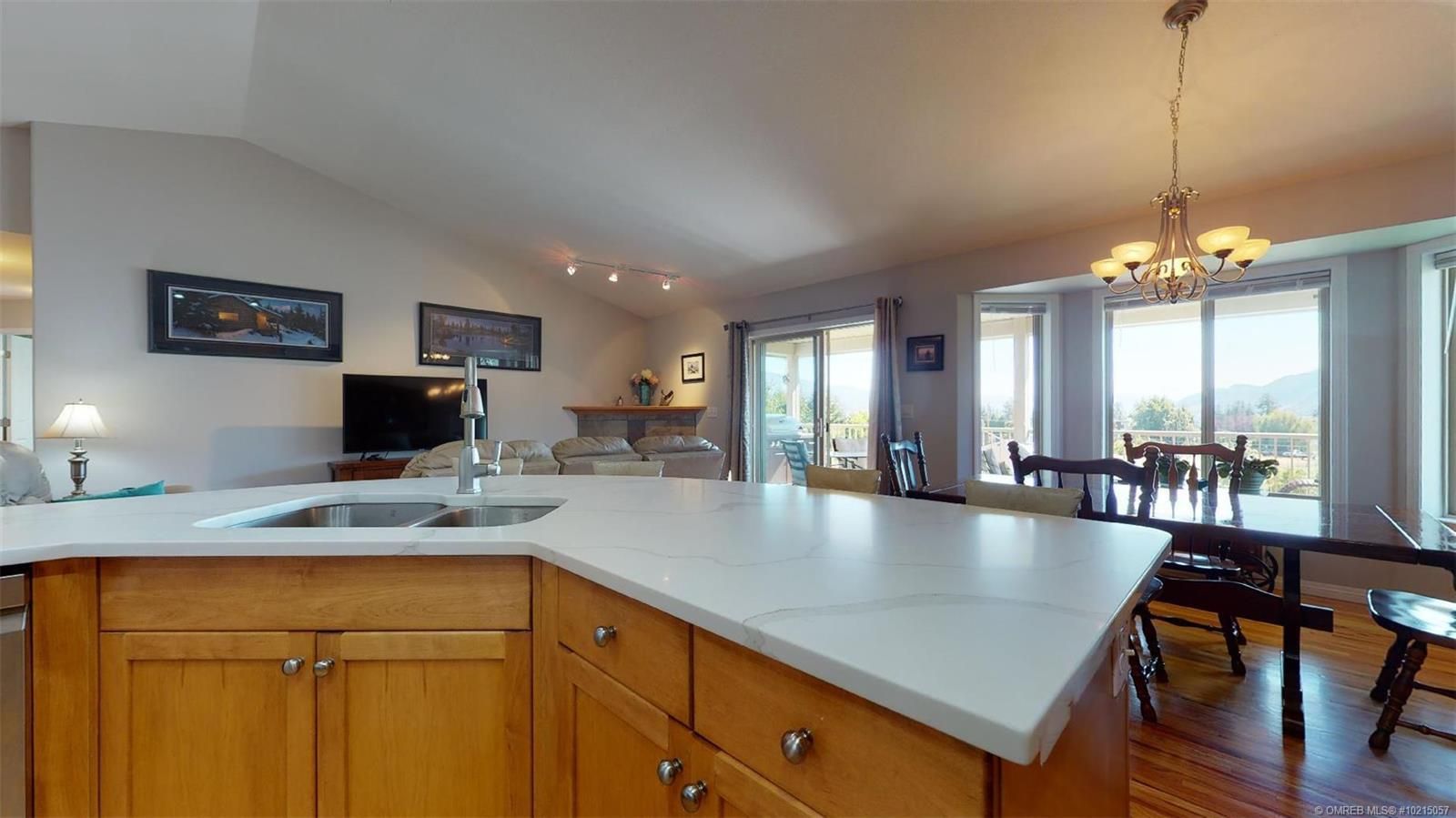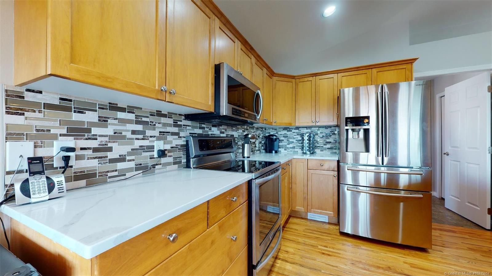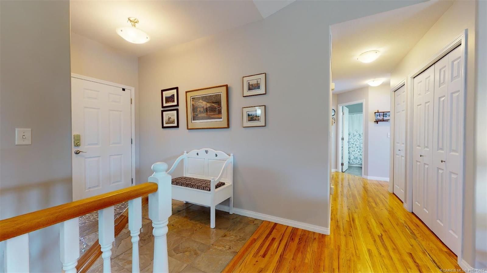 Pride of Ownerhship! Enjoy this 2003 walk-out rancher on a generous .34 acre lot with fenced back yard & irrigation. Home offers an open concept living room with an island kitchen - new quartz counter tops and updated stainless steel appliances. Gorgeous thin strip solid oak hardwood flooring! Carpets are updated in bedrooms. Spacous 25' x 12' covered deck offers views to the mountains, orchards nearby and peekaboo lakeview. RV parking at the side with cleanout and electric hookup!!! Garage has cabinets for tools that can go along with house. Lower level offers large rec room area, two more bedrooms, full bath, and spacioius hobby room/workshop room. This home is updated and kept in great condition and is turnkey ready for you to move into. All measurements approximate please verify if important. (id:2469)