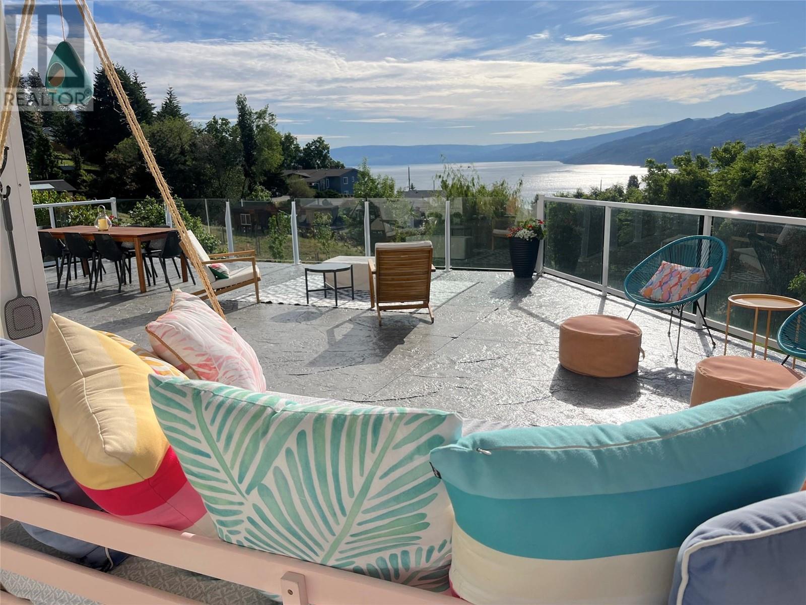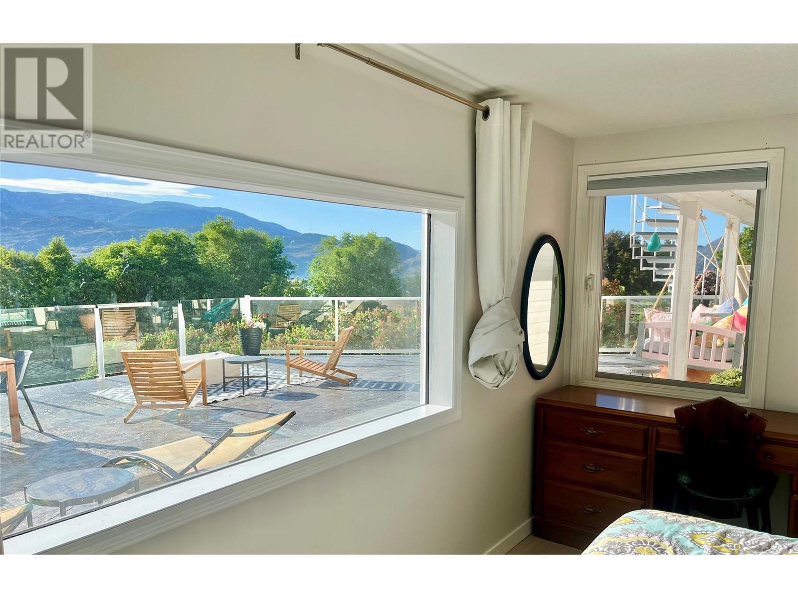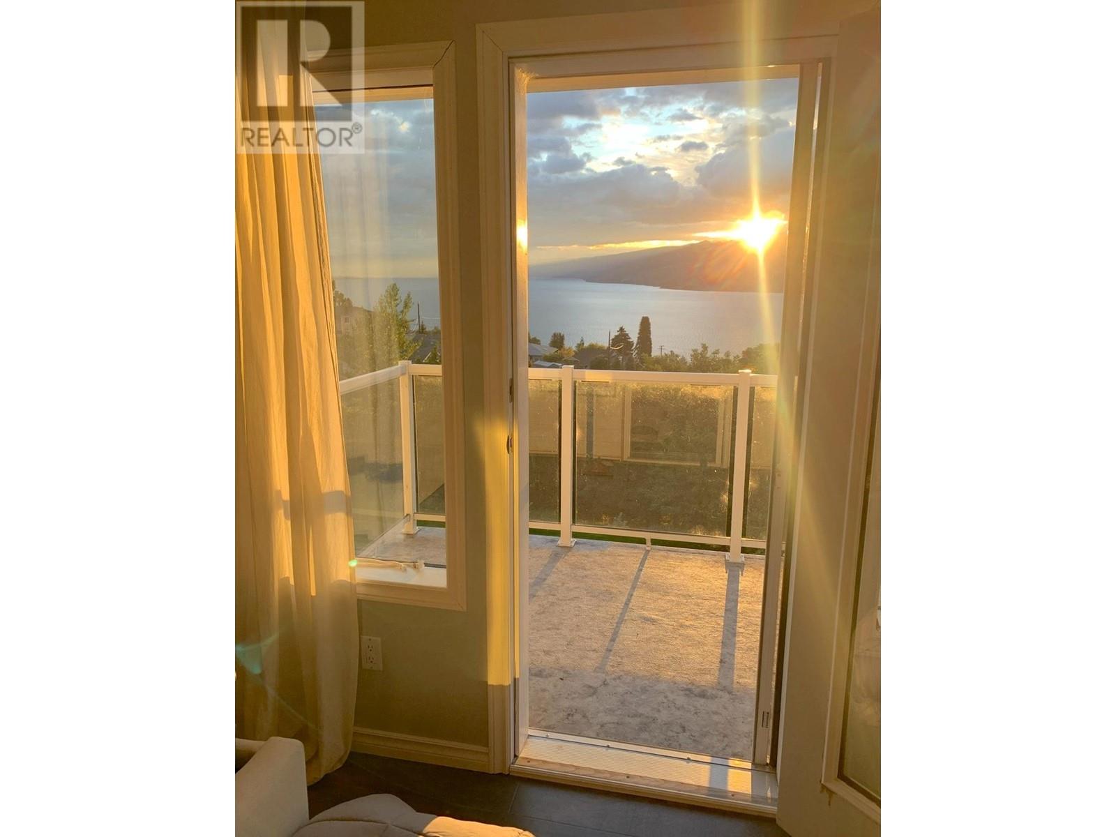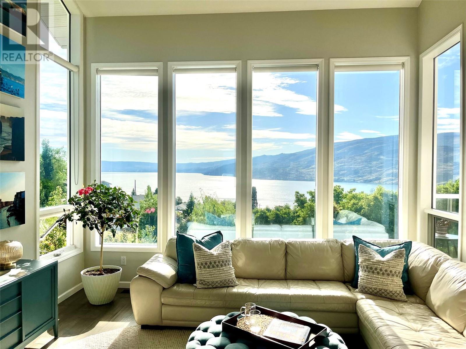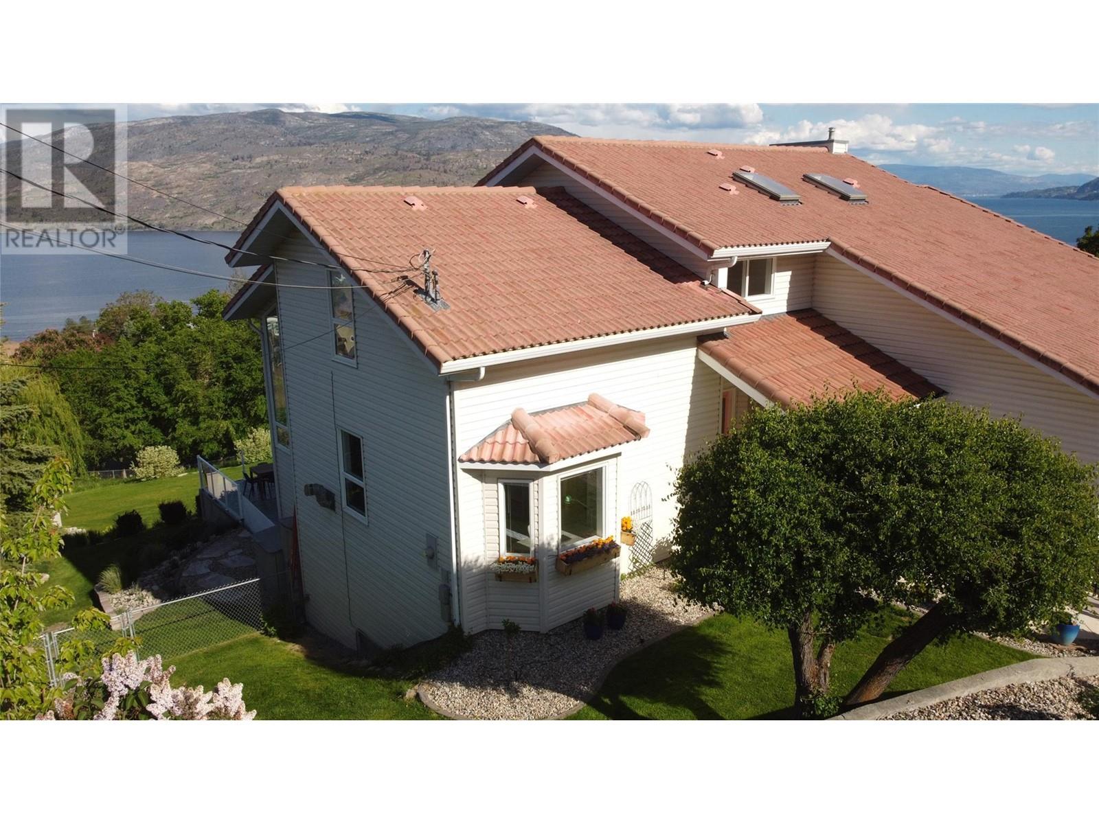The moment you walk through the front door you are greeted with expansive sight lines to the lake across the entire width of the main floor. Huge vaulted ceilings to your left to the upstairs and very tall great room windows open up the lake and valley views to raise your spirits. To your right is a large designer island kitchen that opens up a world of possibilities for entertaining. Enjoy 6 burner gas stove with Euro style hood vent, a coffee & wine bar, open shelving, window trim & island in custom black walnut. The large picture window opens all the way for access to the kitchen bar on sundeck. Enjoy the outdoor quartzite eating bar. The upper level boasts a large primary bedroom with terrific views looking across and south to Penticton. A 5-piece ensuite with large soaker and walk in shower plus walk-in closet compliment the primary bedroom. The lower level offers a large family room/rec room with access to a massive stamped concrete deck with lovely lake and garden views. Enjoy double garage with room to turn around at the bottom, plus extra parking along the road. Ellison Ave is a school bus route which gets plowed first in the winter. There is a bus stop just up the street at Ellison & Princeton Road. New lighting throughout, top down bottom up blinds for maximum view and privacy, French bistro brass & glass shelving. New hot water tank. Furnace 2015, AC Compressor 2022 and newer appliances. Clay tile roof! Just move in! (id:2469)