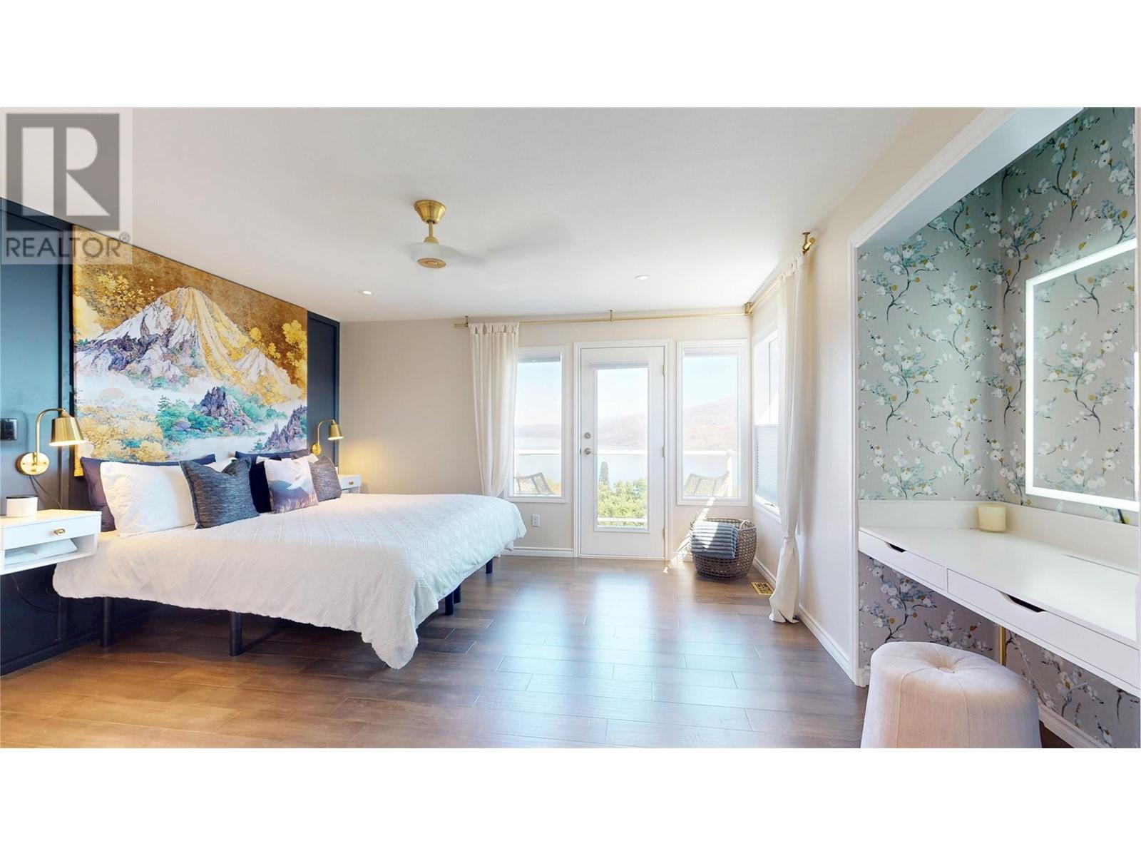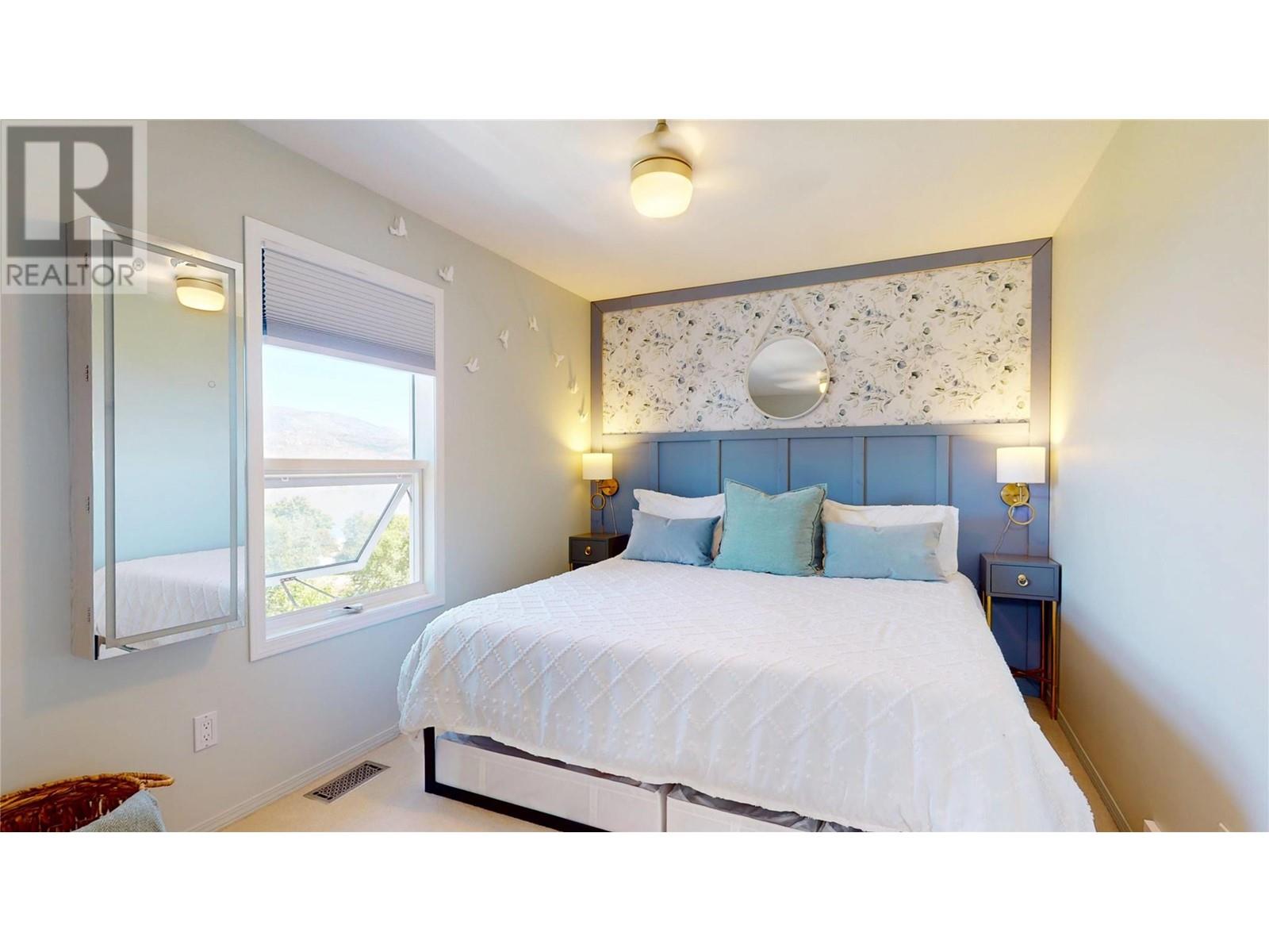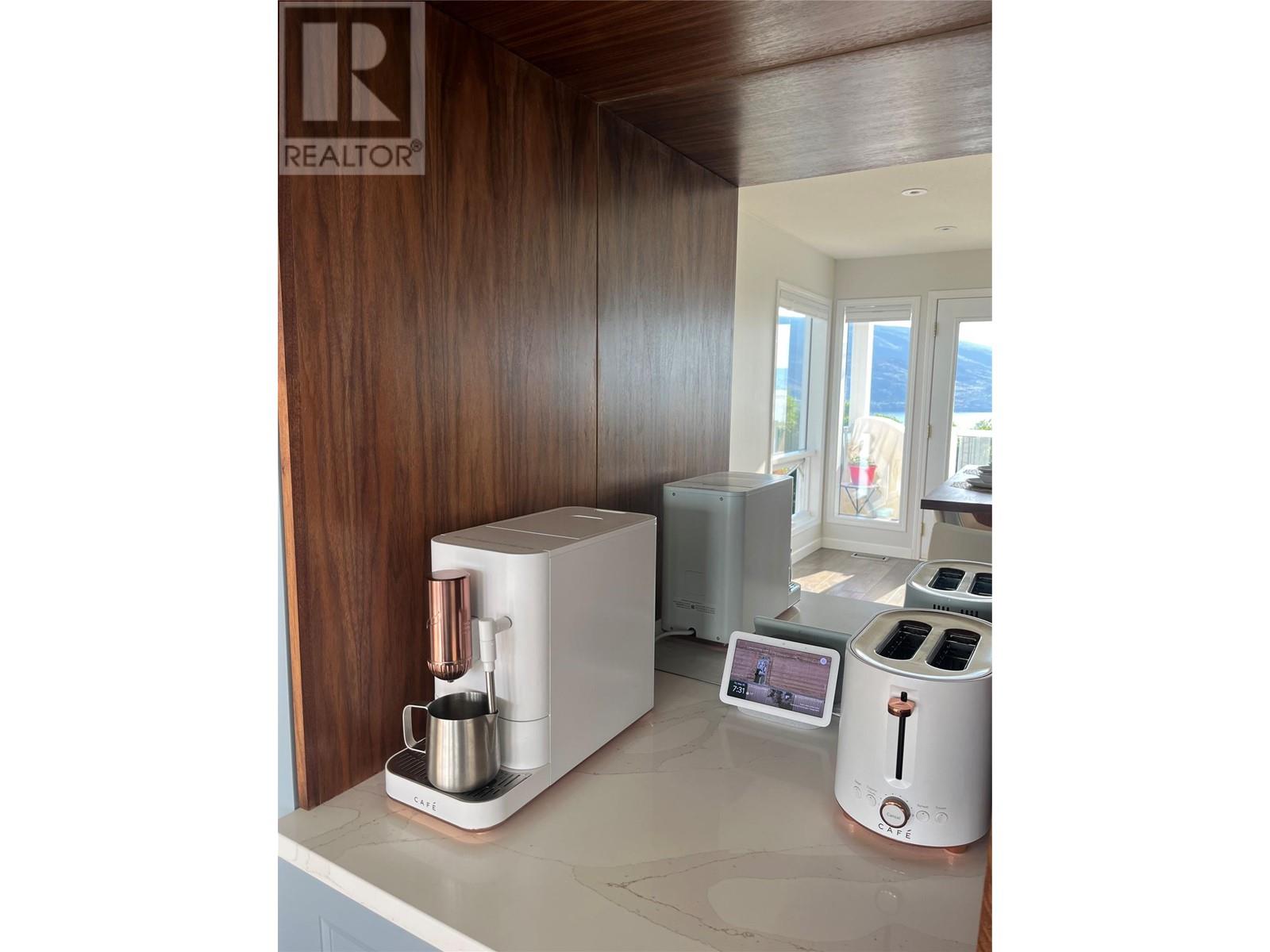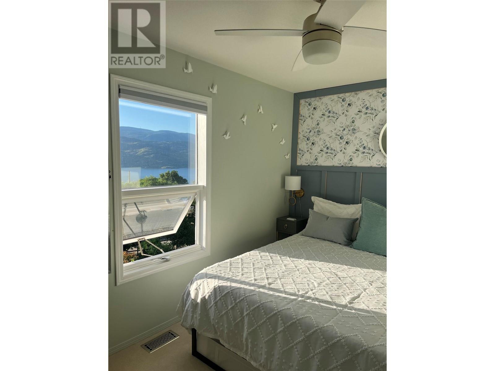 The moment you walk through the front door you are greeted with expansive sight lines to the lake across the entire width of the main floor. Huge vaulted ceilings to your left to the upstairs and very tall great room windows open up the lake and valley views to raise your spirits. To your right is a large designer island kitchen that opens up a world of possibilities for entertaining. Enjoy 6 burner gas stove with Euro style hood vent, a coffee & wine bar, open shelving, window trim & island in custom black walnut. The large picture window opens all the way for access to the kitchen bar on sundeck. Enjoy the outdoor quartzite eating bar. The upper level boasts a large primary bedroom with terrific views looking across and south to Penticton. A 5-piece ensuite with large soaker and walk in shower plus walk-in closet compliment the primary bedroom. The lower level offers a large family room/rec room with access to a massive stamped concrete deck with lovely lake and garden views. Enjoy double garage with room to turn around at the bottom, plus extra parking along the road. Ellison Ave is a school bus route which gets plowed first in the winter. There is a bus stop just up the street at Ellison & Princeton Road. New lighting throughout, top down bottom up blinds for maximum view and privacy, French bistro brass & glass shelving. New hot water tank. Furnace 2015, AC Compressor 2022 and newer appliances. Clay tile roof! Just move in! (id:2469)