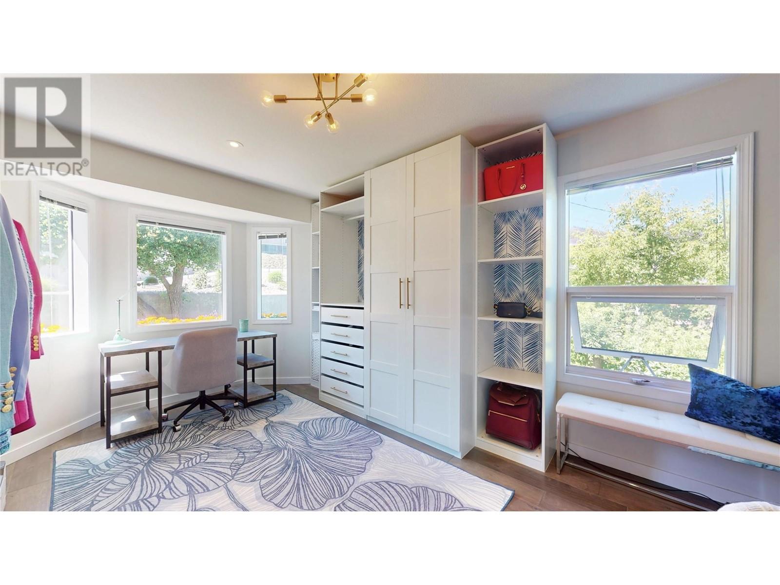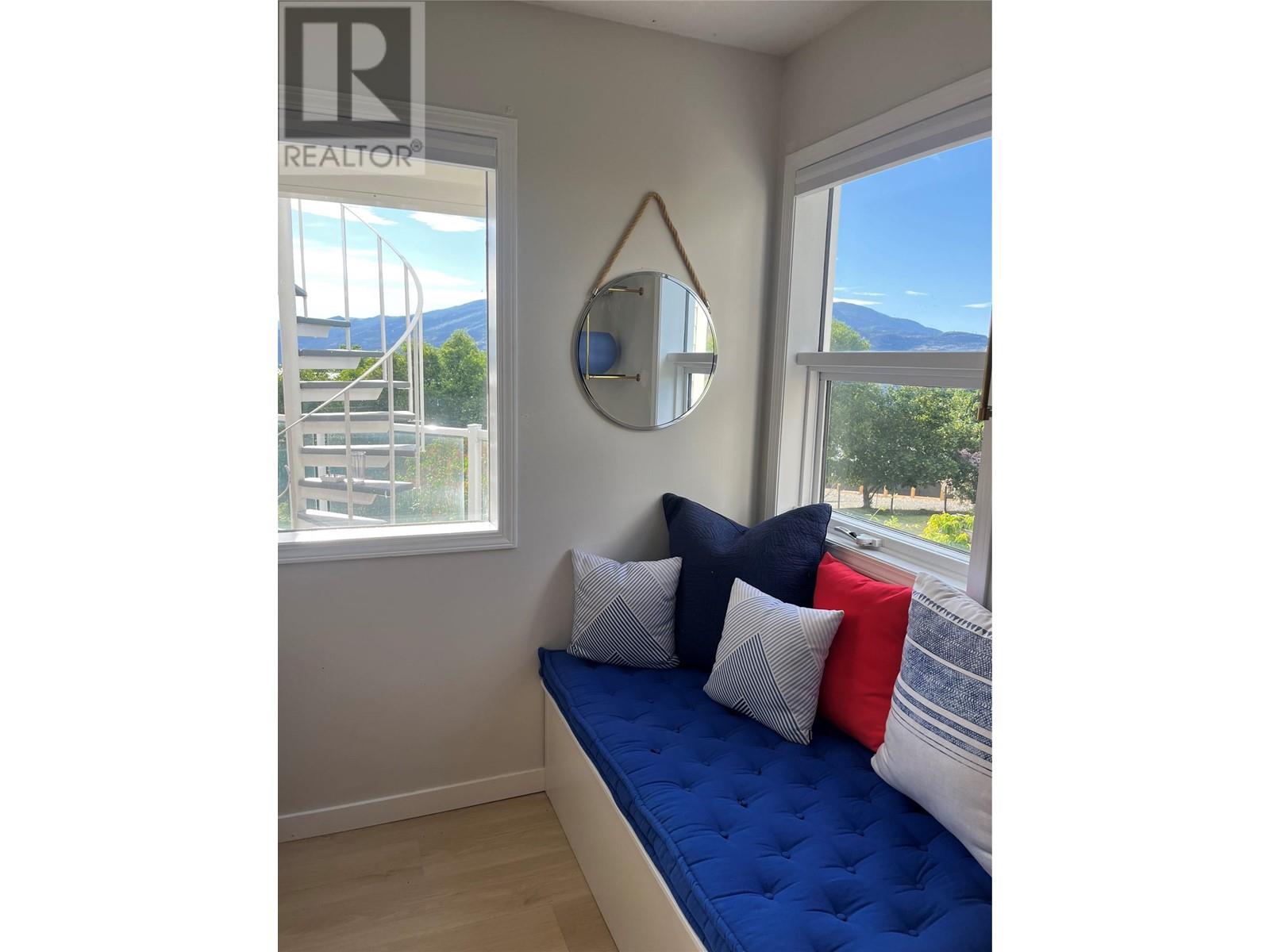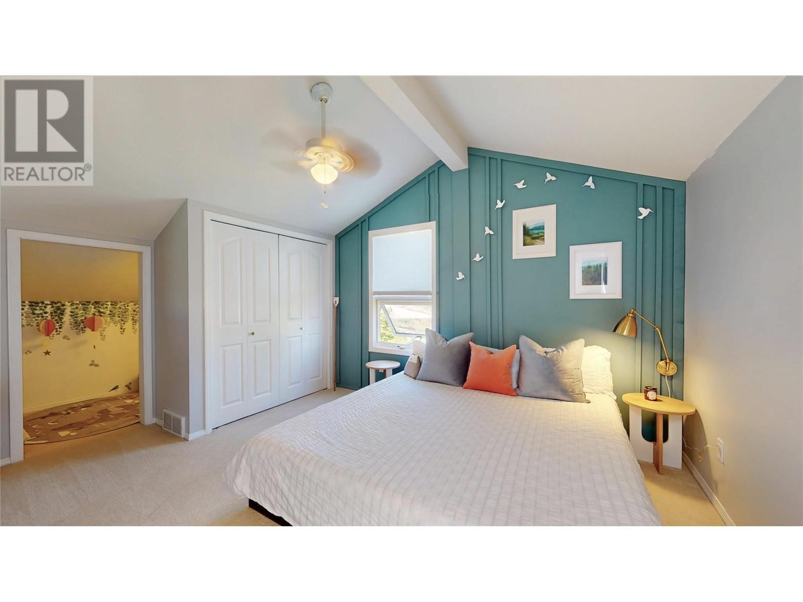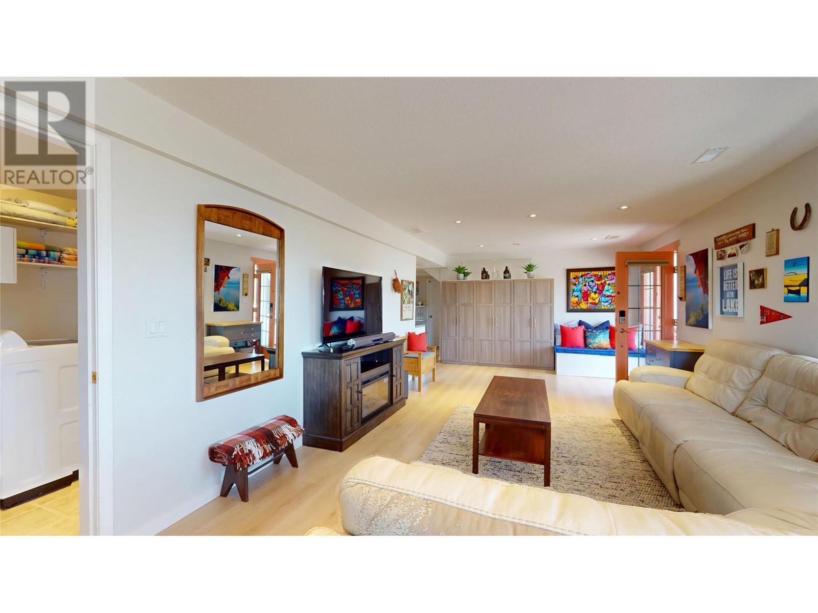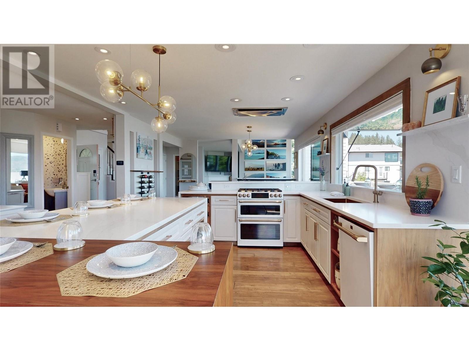 The moment you walk through the front door you are greeted with expansive sight lines to the lake across the entire width of the main floor. Huge vaulted ceilings to your left to the upstairs and very tall great room windows open up the lake and valley views to raise your spirits. To your right is a large designer island kitchen that opens up a world of possibilities for entertaining. Enjoy 6 burner gas stove with Euro style hood vent, a coffee & wine bar, open shelving, window trim & island in custom black walnut. The large picture window opens all the way for access to the kitchen bar on sundeck. Enjoy the outdoor quartzite eating bar. The upper level boasts a large primary bedroom with terrific views looking across and south to Penticton. A 5-piece ensuite with large soaker and walk in shower plus walk-in closet compliment the primary bedroom. The lower level offers a large family room/rec room with access to a massive stamped concrete deck with lovely lake and garden views. Enjoy double garage with room to turn around at the bottom, plus extra parking along the road. Ellison Ave is a school bus route which gets plowed first in the winter. There is a bus stop just up the street at Ellison & Princeton Road. New lighting throughout, top down bottom up blinds for maximum view and privacy, French bistro brass & glass shelving. New hot water tank. Furnace 2015, AC Compressor 2022 and newer appliances. Clay tile roof! Just move in! (id:2469)