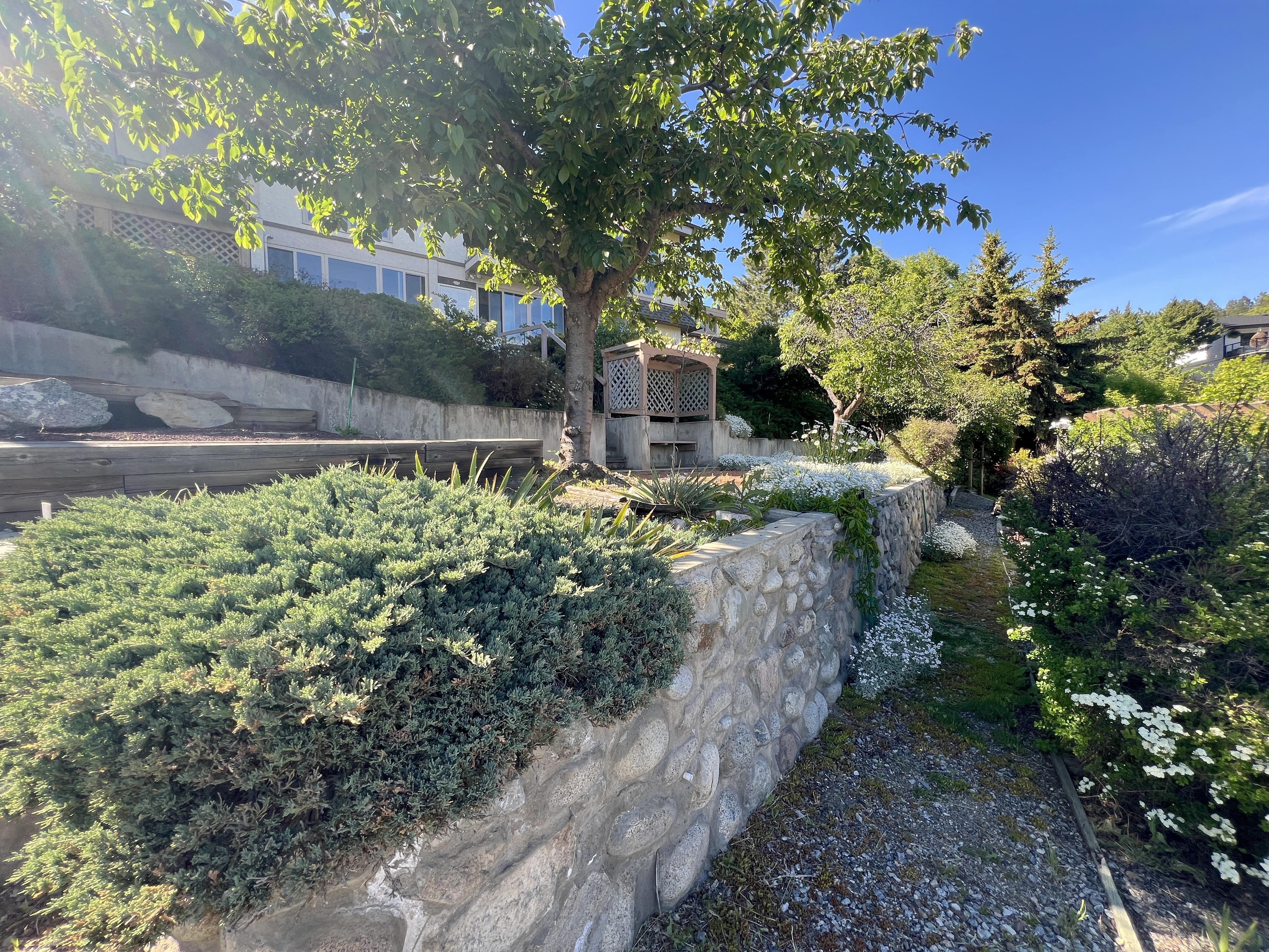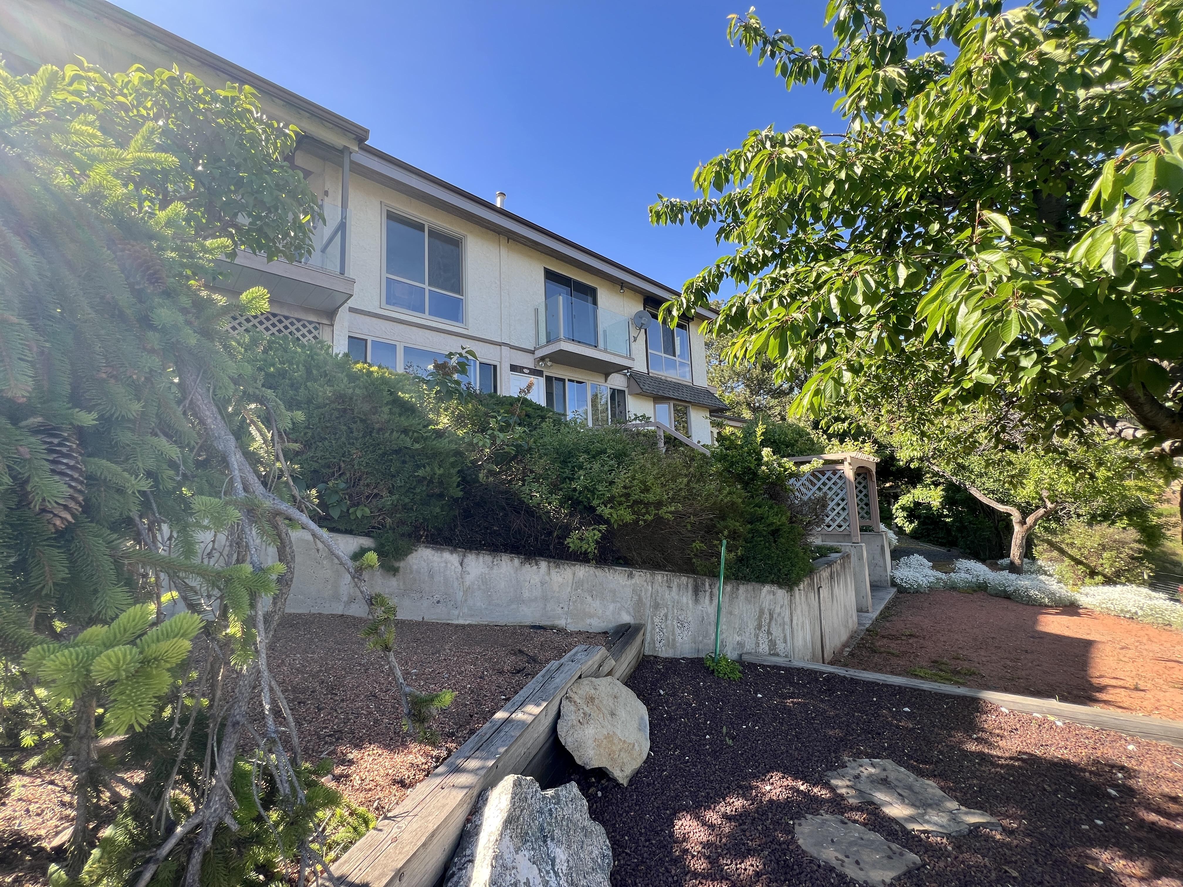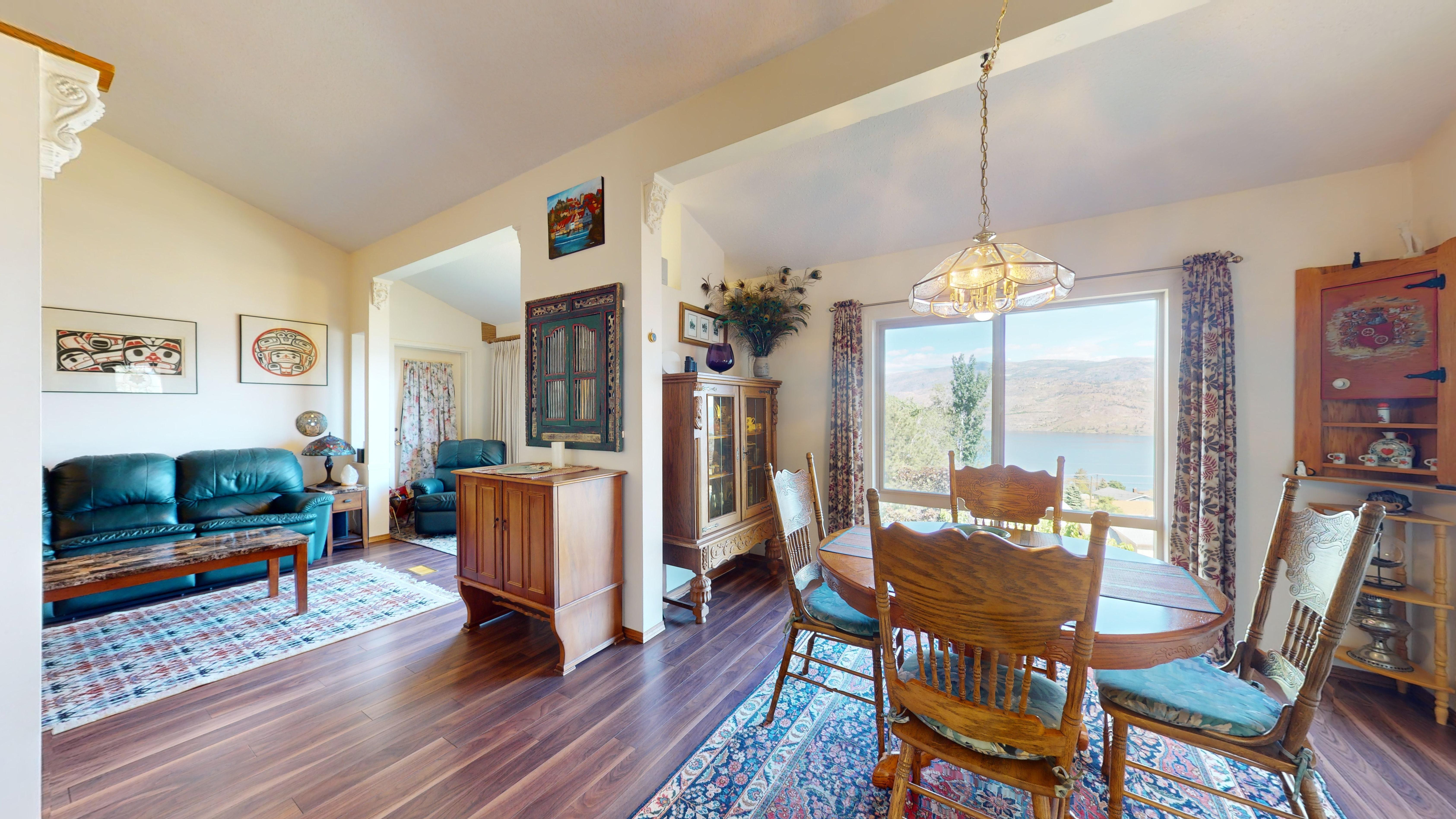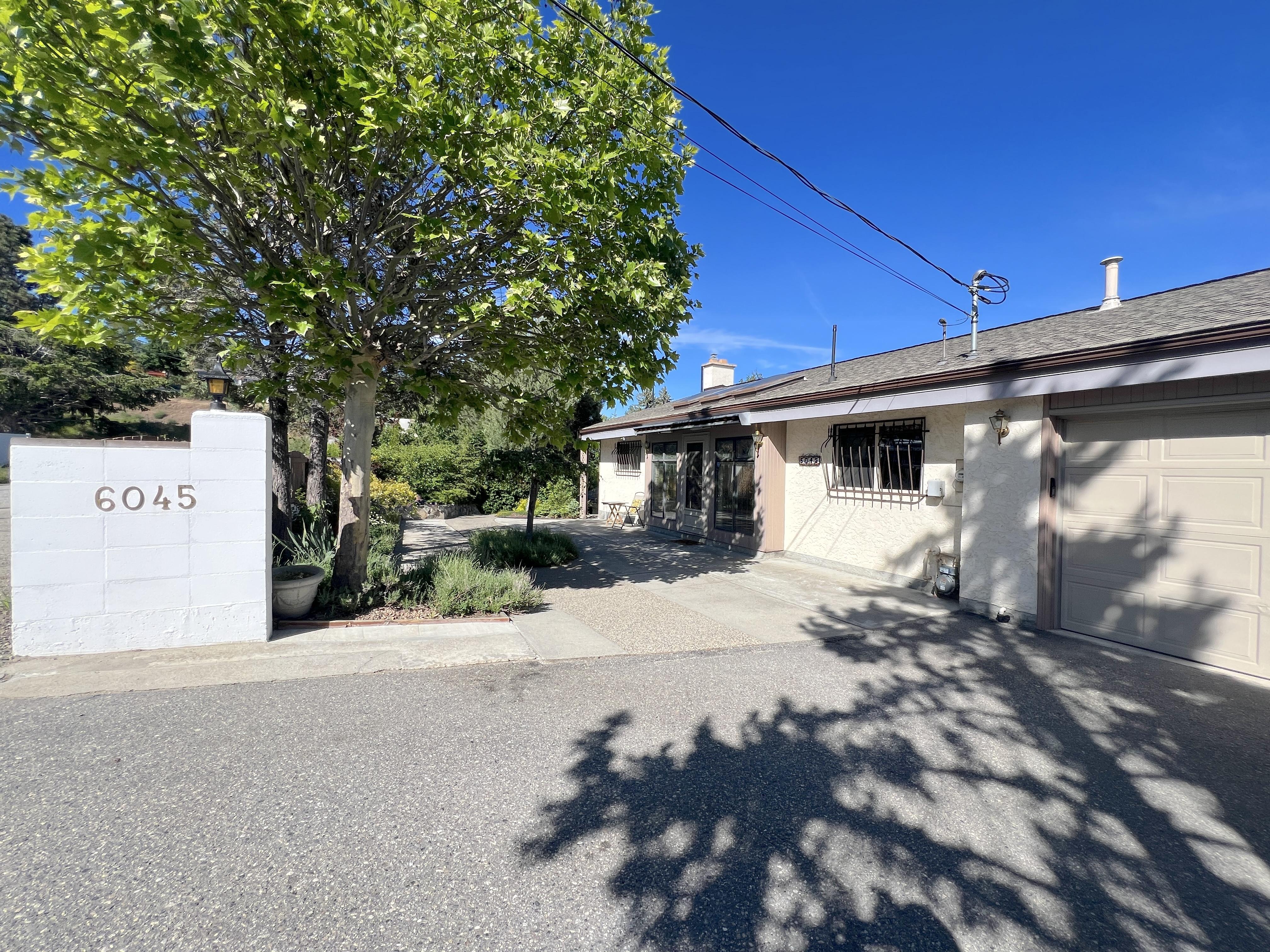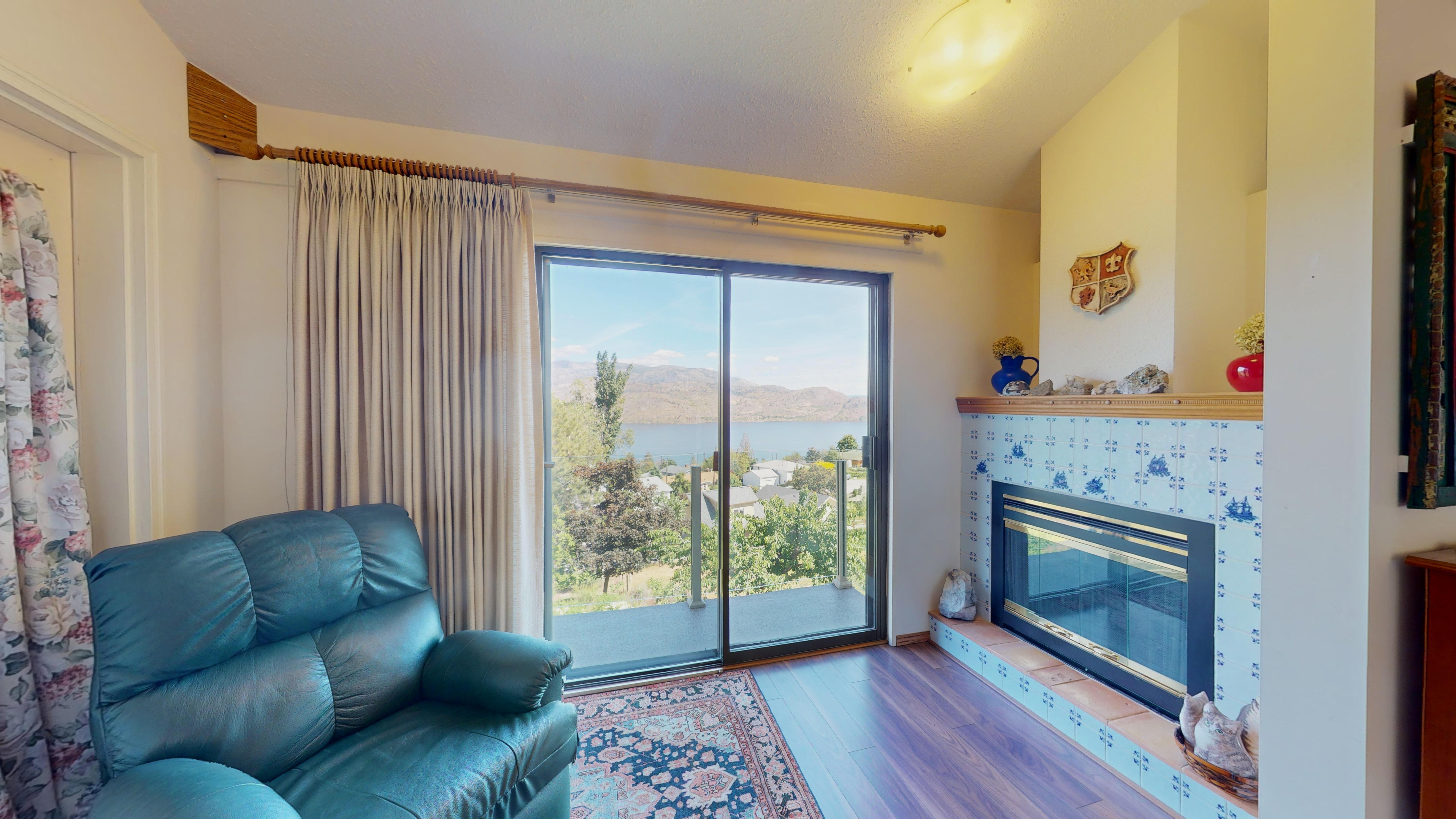 Great lake views looking south towards Penticton. No step rancher walk out with vaulted ceilings, beams and archways & stained glass accents. Well cared for home with pride of ownership and updates over the years, recently new hotwater tank and new air conditioning. There is a private lower side yard gathering area plus the backyard is fully terraced and landscaped with fruit trees and gardens. Closed in court yard at the front of the house for privacy and parking for RV or boat. Parking out front along the road as well. Great neighbourhood on school bus route so plowed first in the winter. That rare combination of a flat driveway with lakeviews!