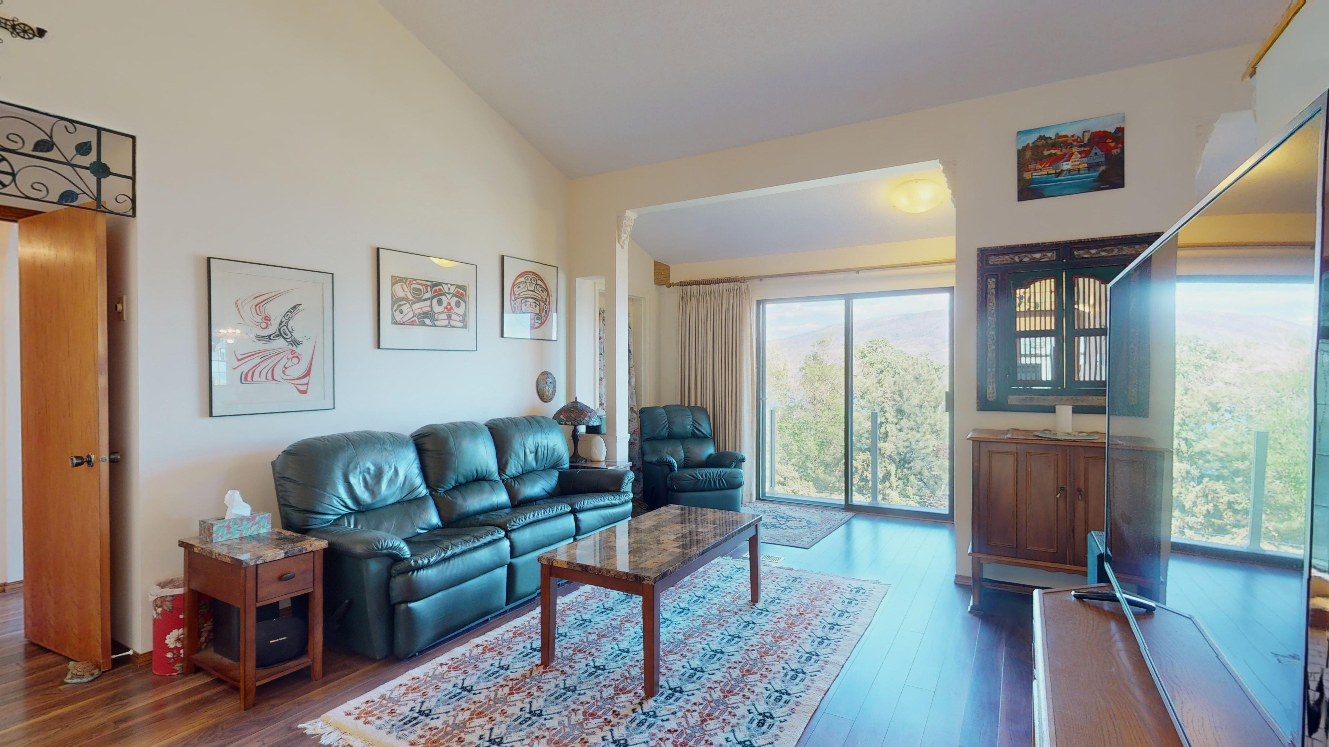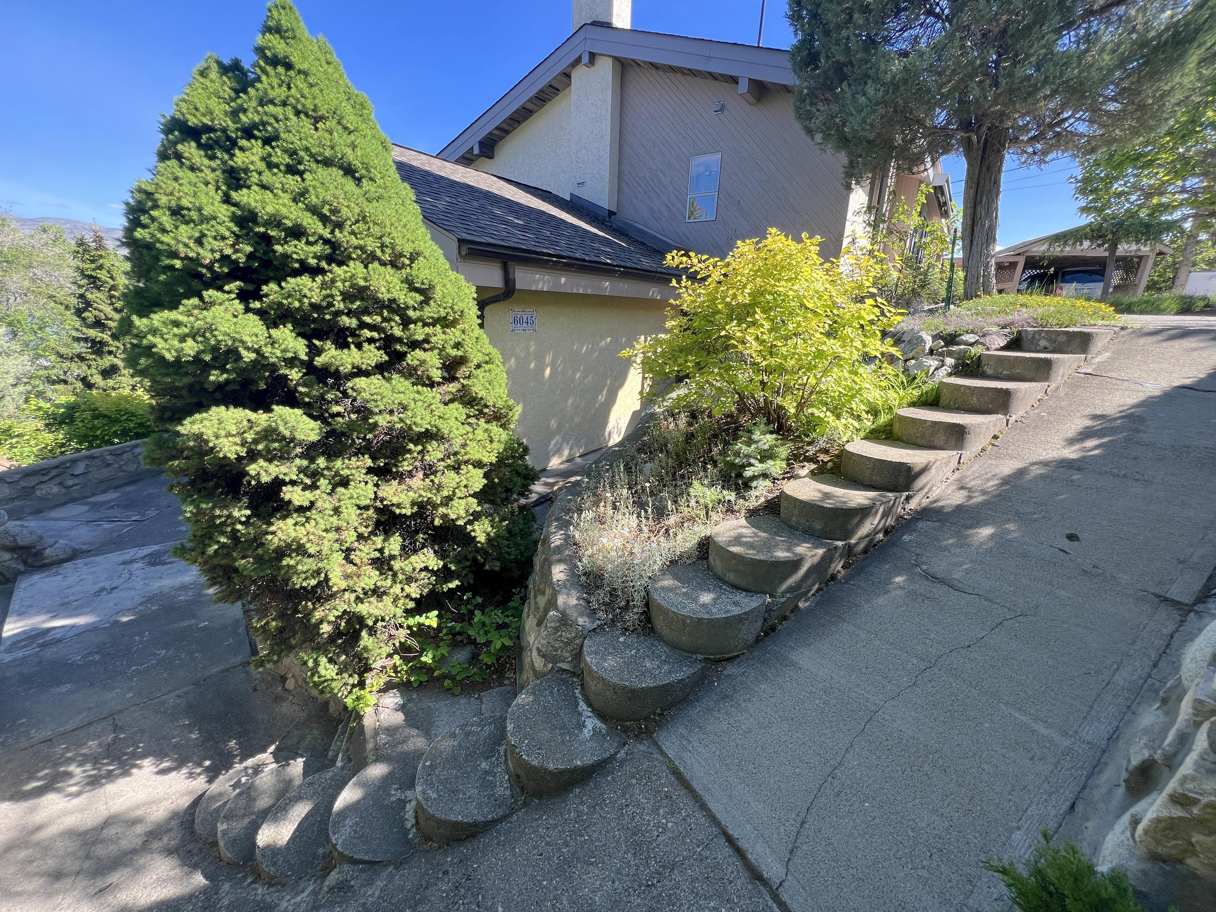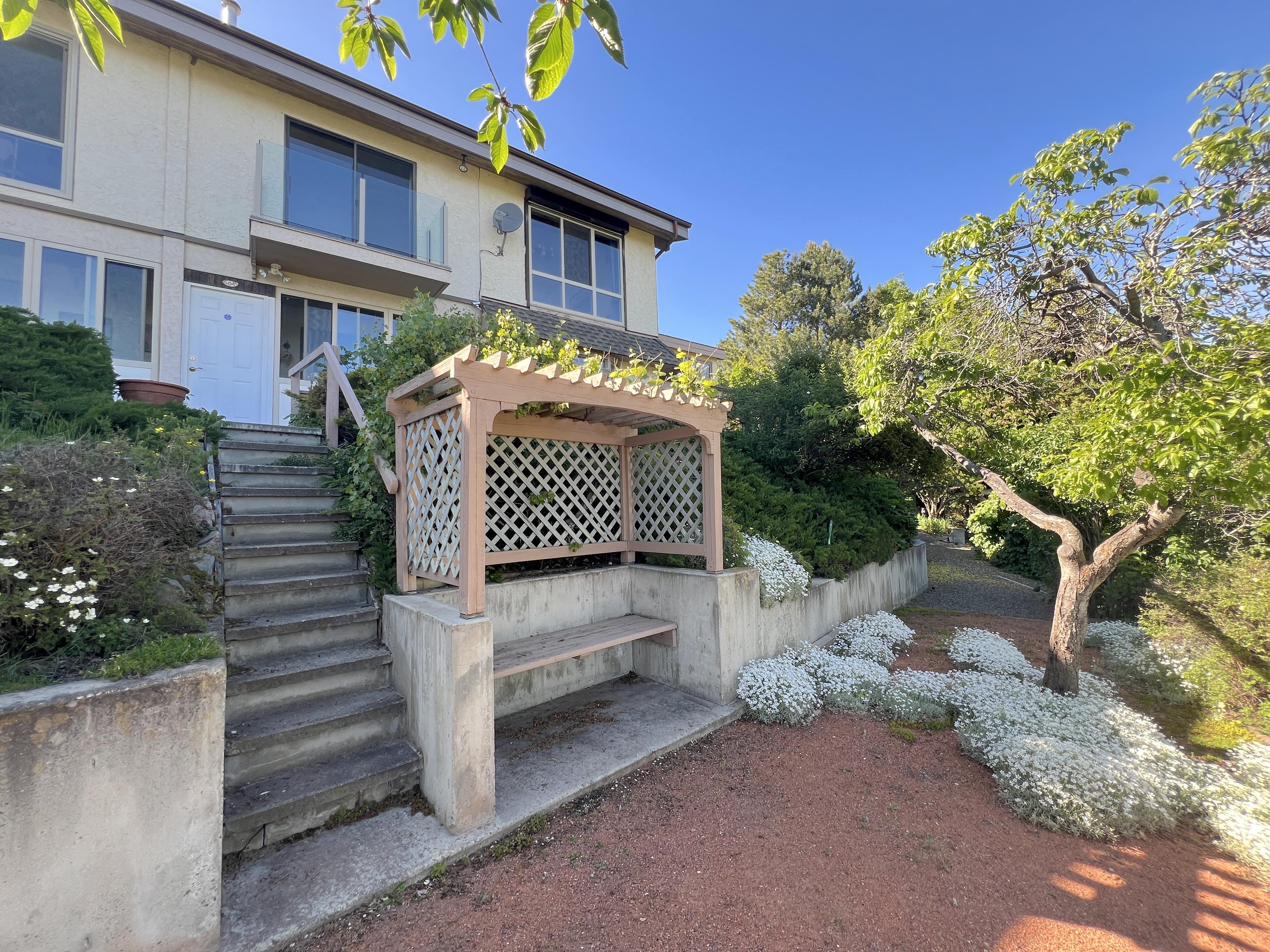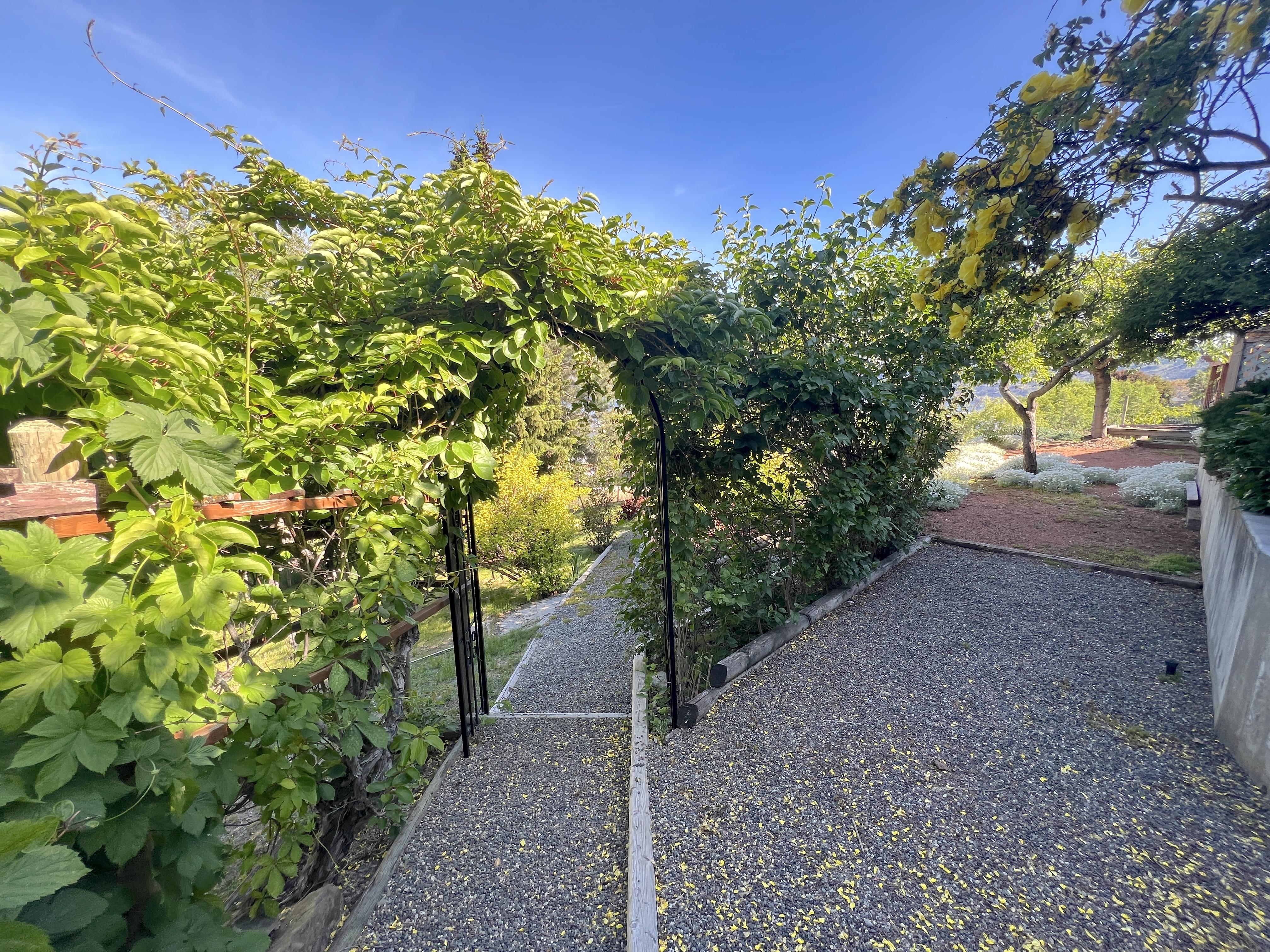 Great lake views looking south towards Penticton. No step rancher walk out with vaulted ceilings, beams and archways & stained glass accents. Well cared for home with pride of ownership and updates over the years, recently new hotwater tank and new air conditioning. There is a private lower side yard gathering area plus the backyard is fully terraced and landscaped with fruit trees and gardens. Closed in court yard at the front of the house for privacy and parking for RV or boat. Parking out front along the road as well. Great neighbourhood on school bus route so plowed first in the winter. That rare combination of a flat driveway with lakeviews!