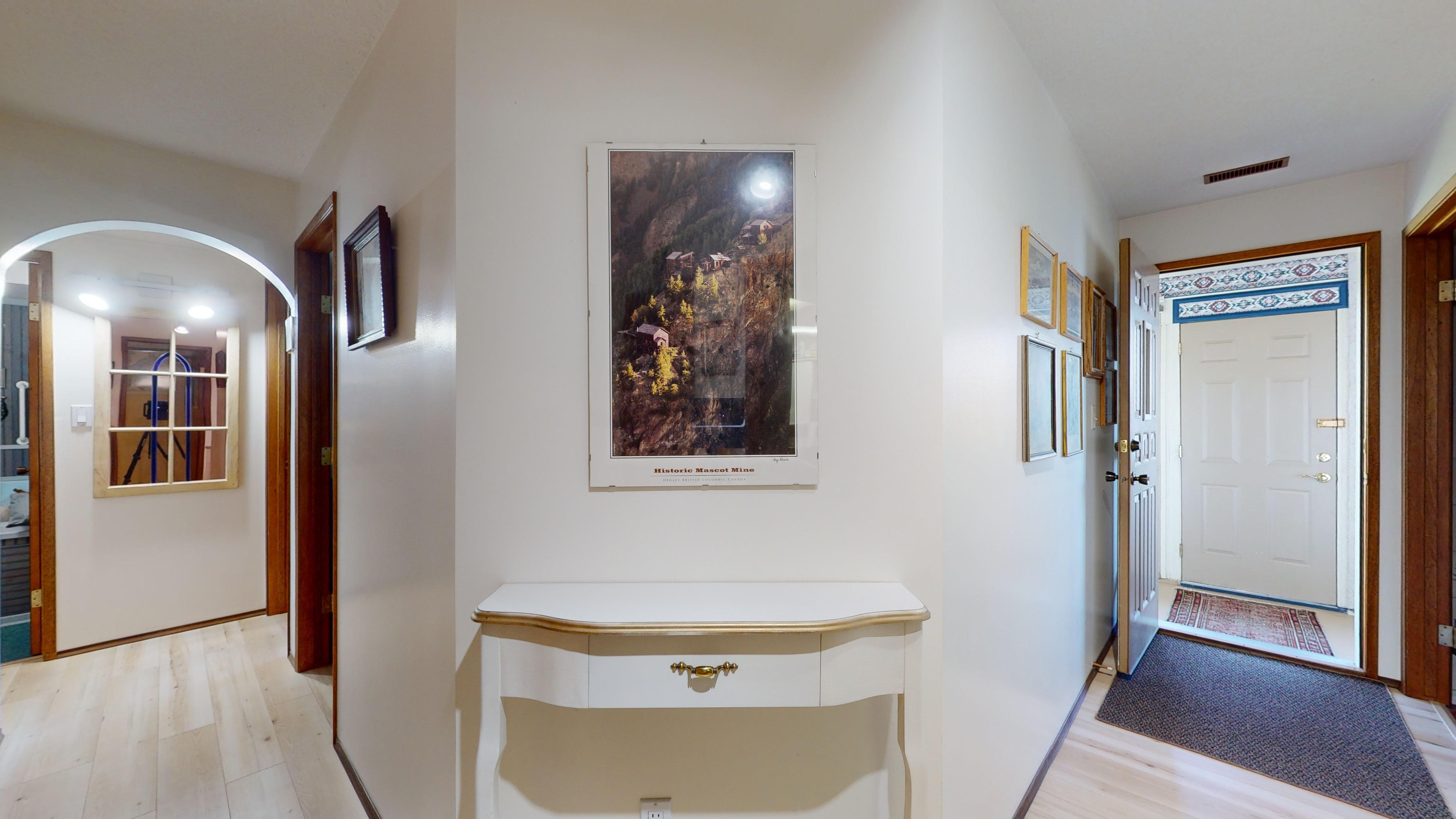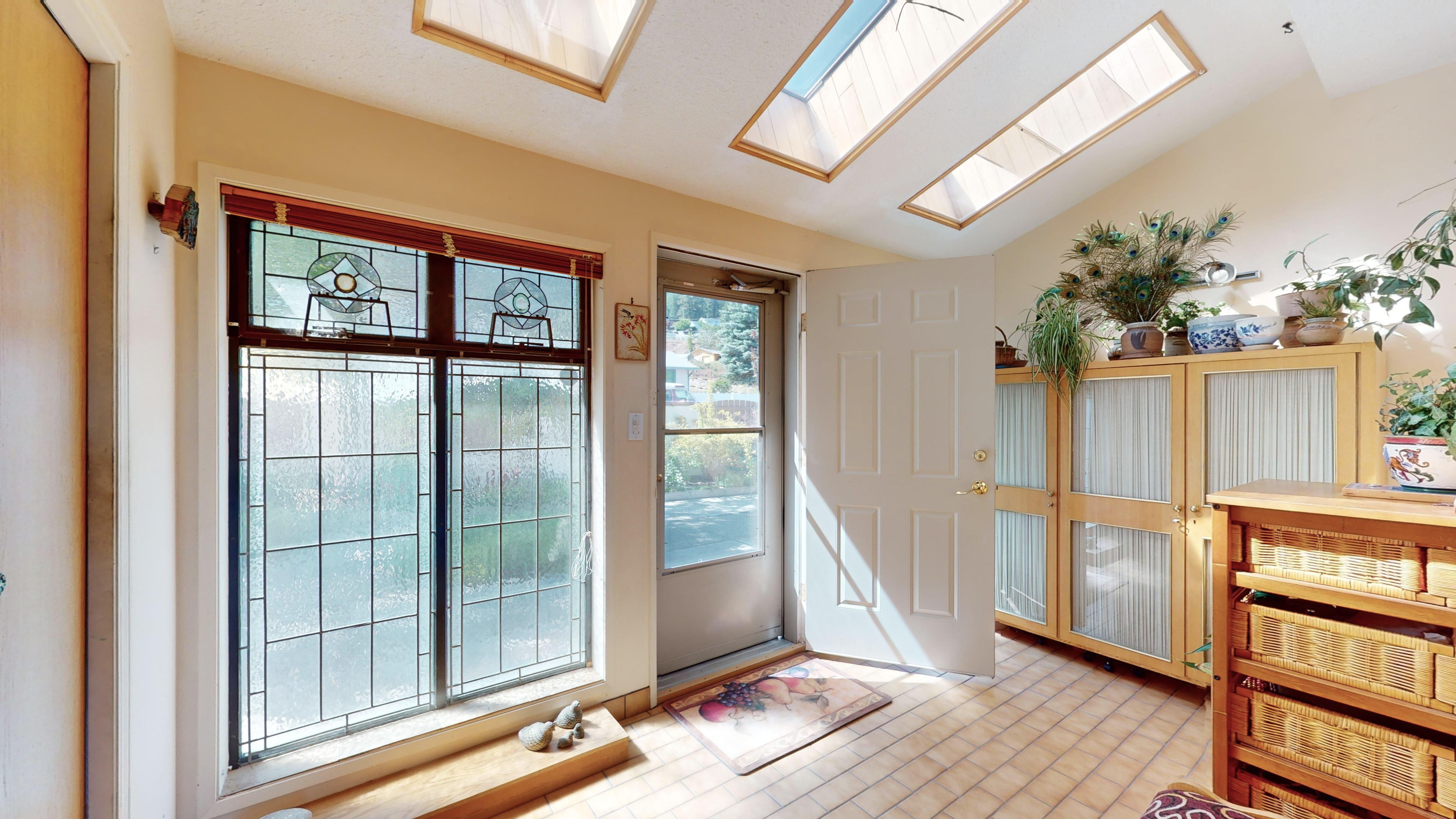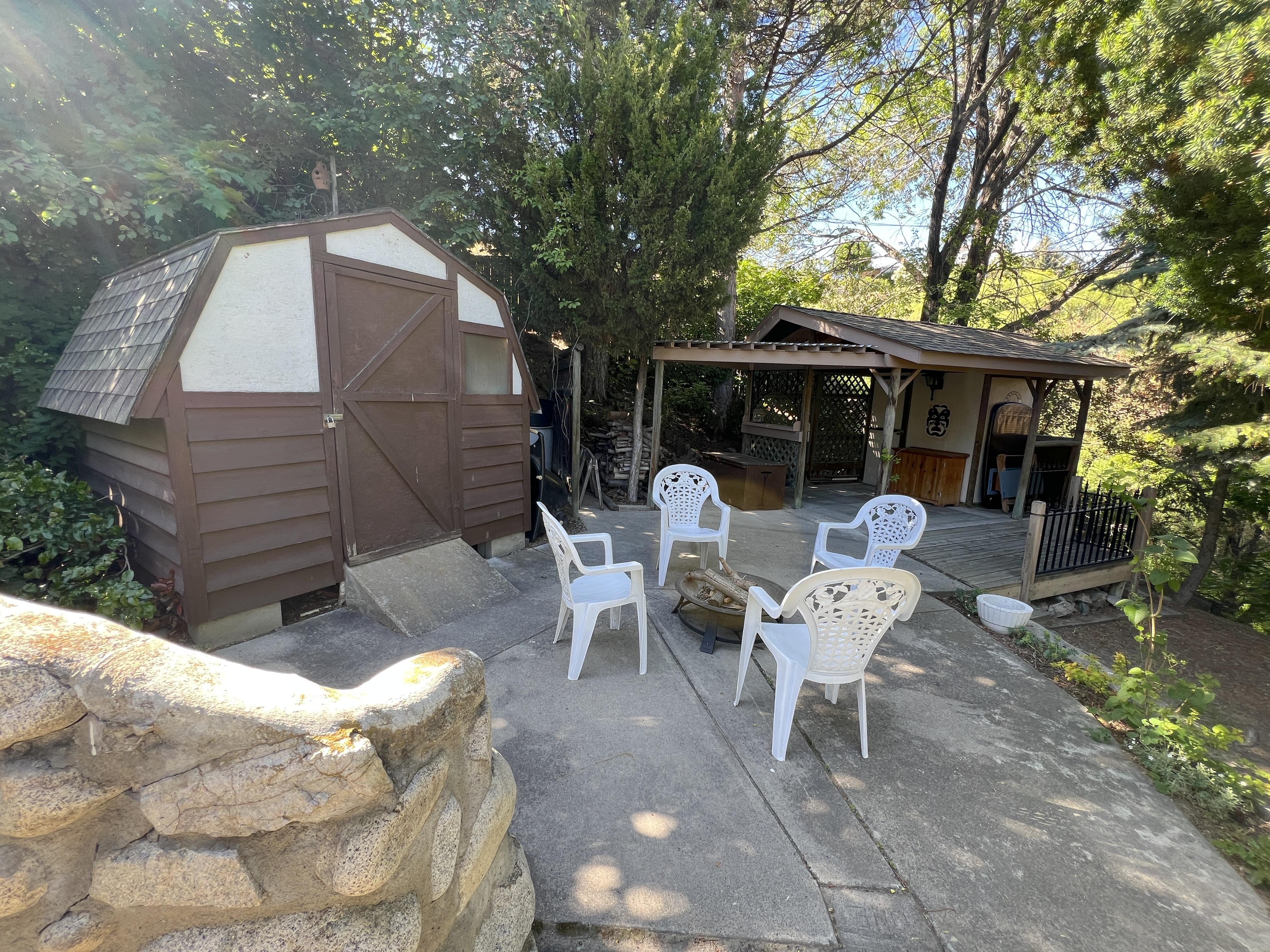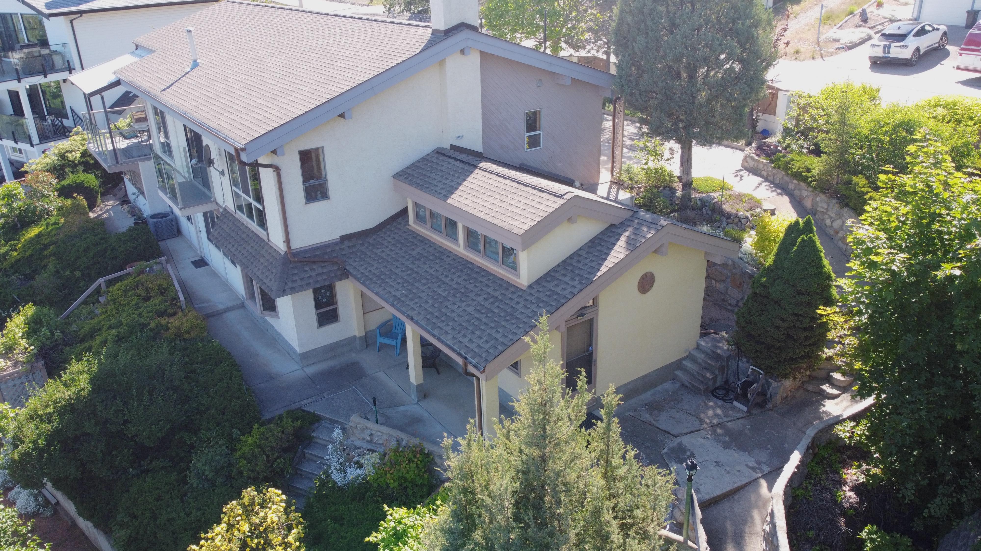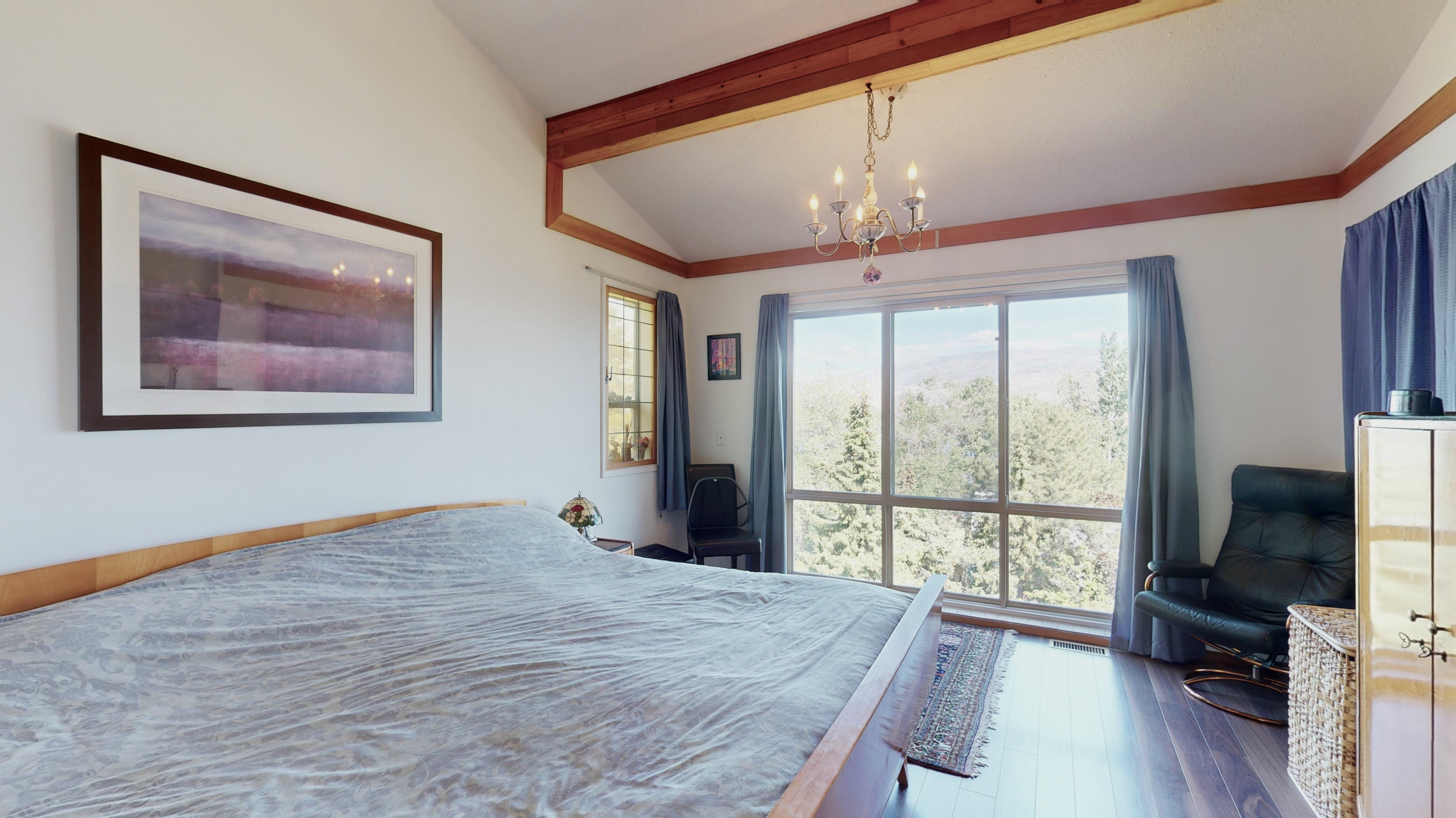 Great lake views looking south towards Penticton. No step rancher walk out with vaulted ceilings, beams and archways & stained glass accents. Well cared for home with pride of ownership and updates over the years, recently new hotwater tank and new air conditioning. There is a private lower side yard gathering area plus the backyard is fully terraced and landscaped with fruit trees and gardens. Closed in court yard at the front of the house for privacy and parking for RV or boat. Parking out front along the road as well. Great neighbourhood on school bus route so plowed first in the winter. That rare combination of a flat driveway with lakeviews!