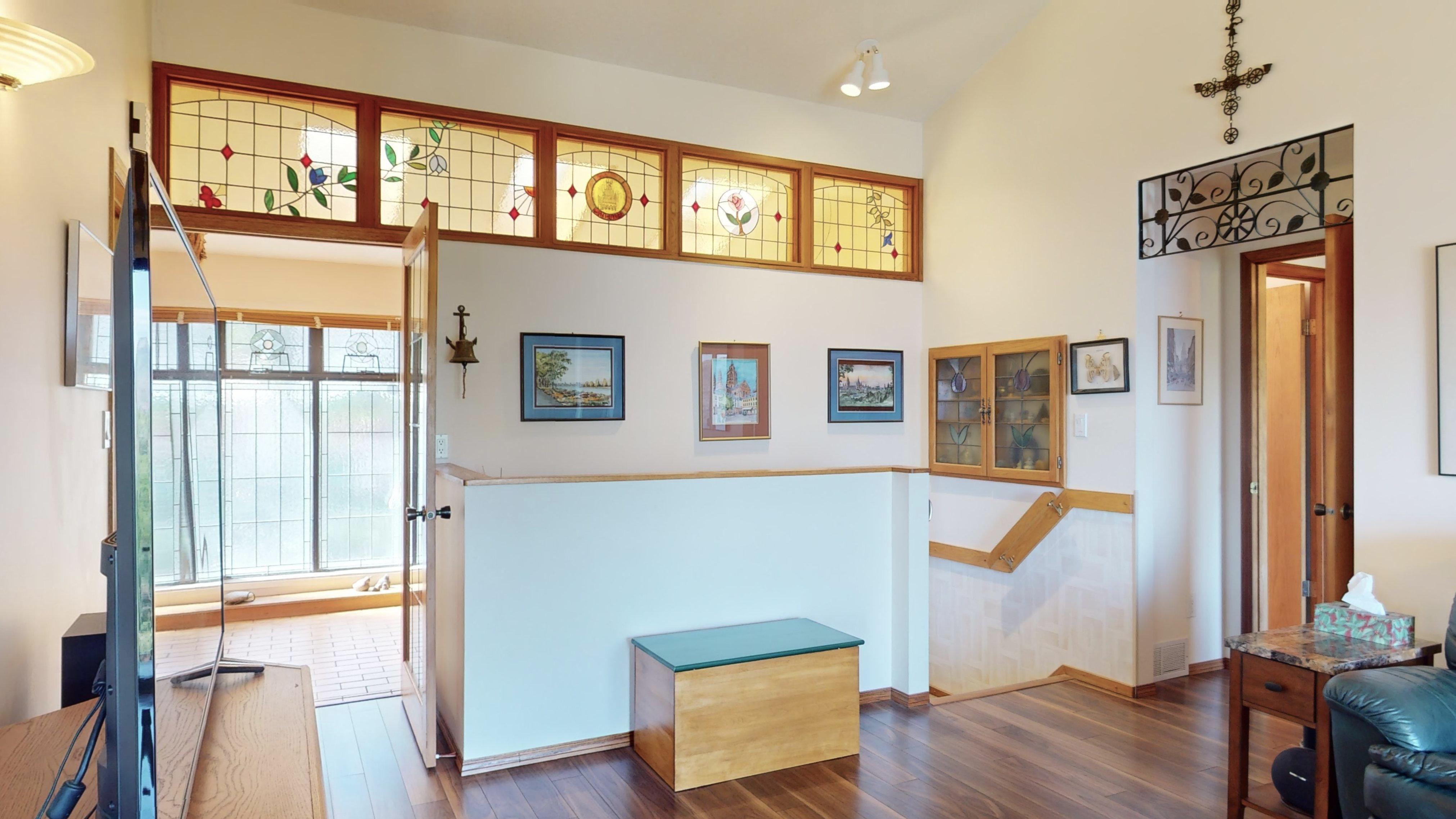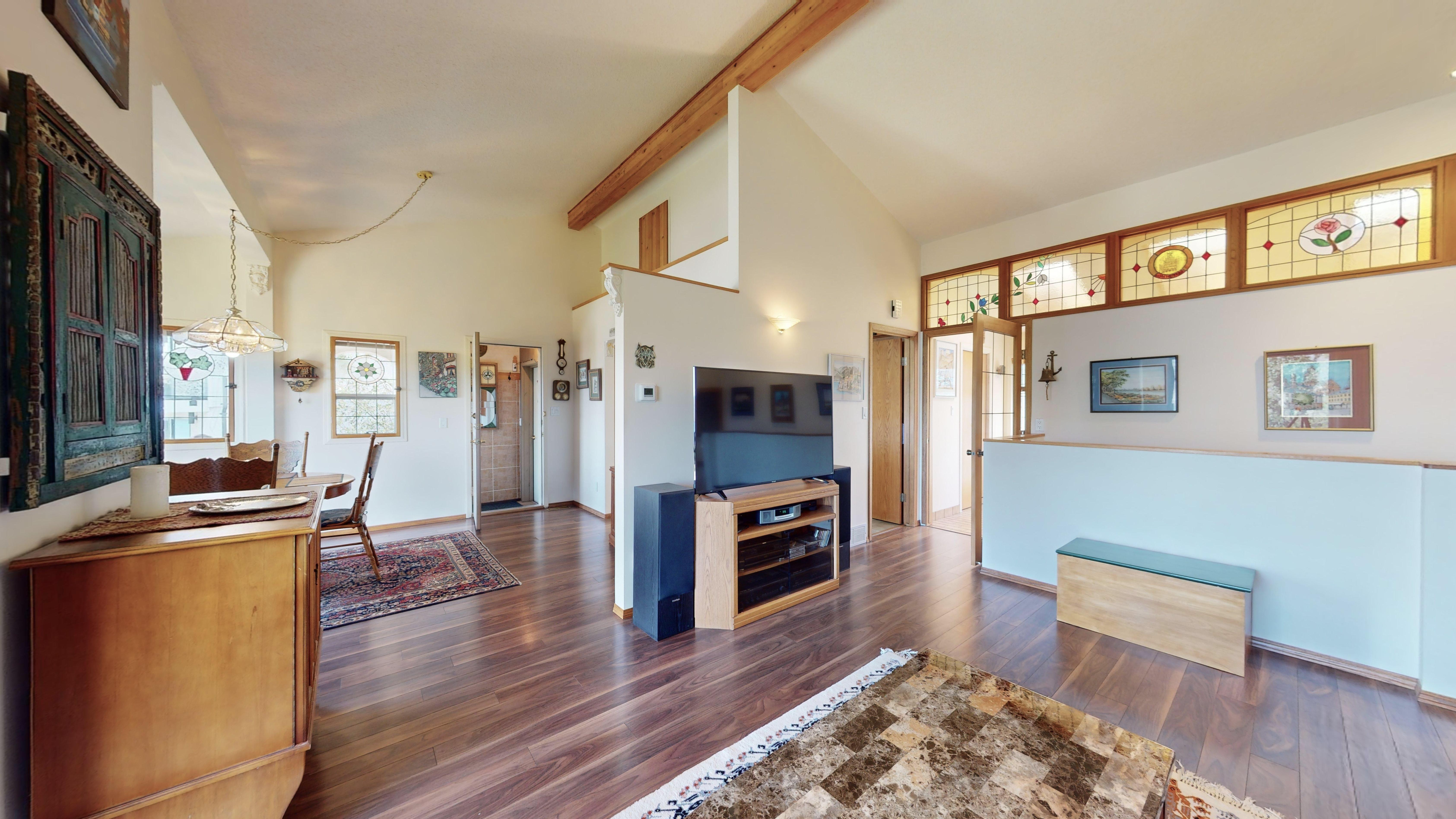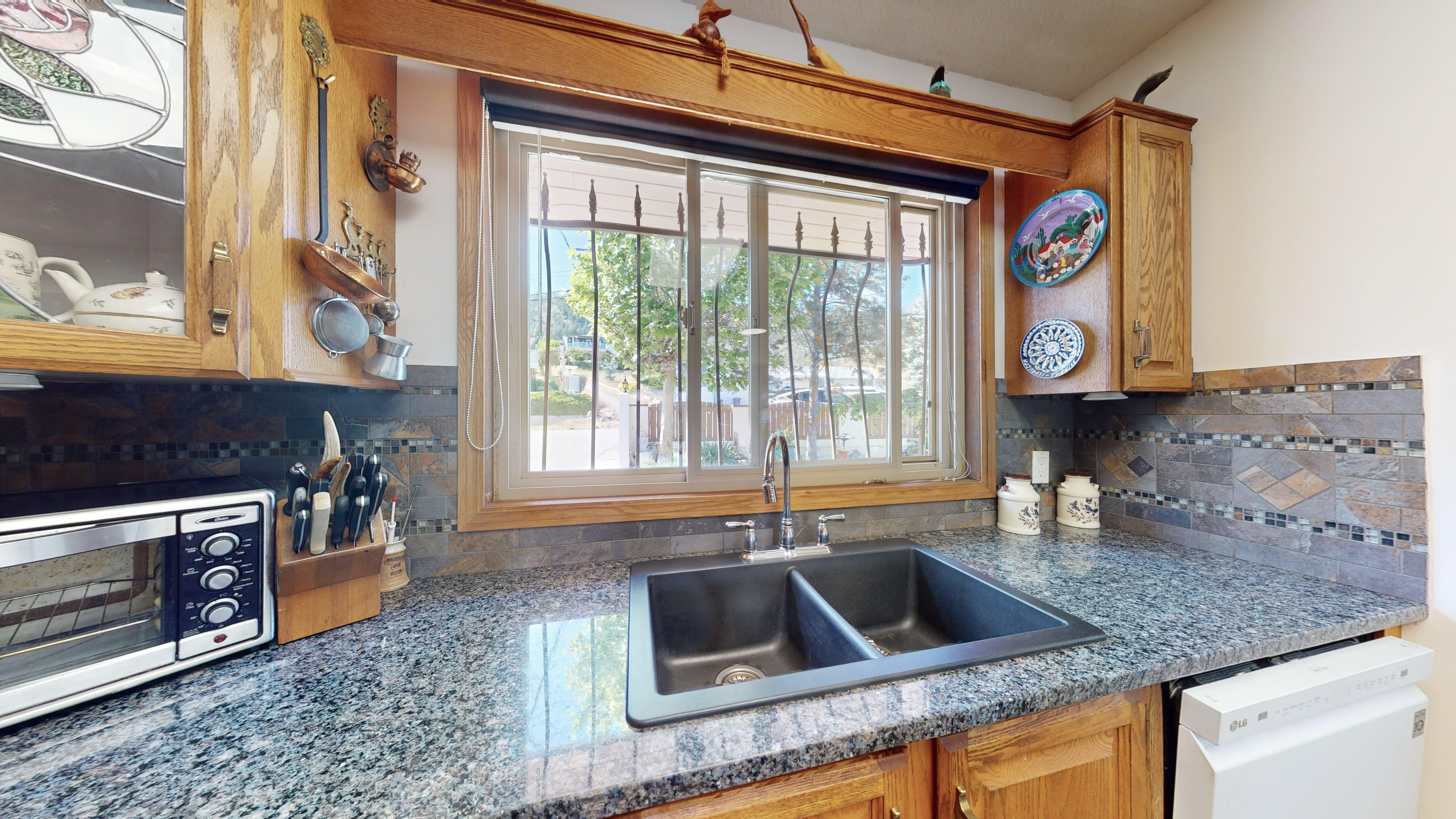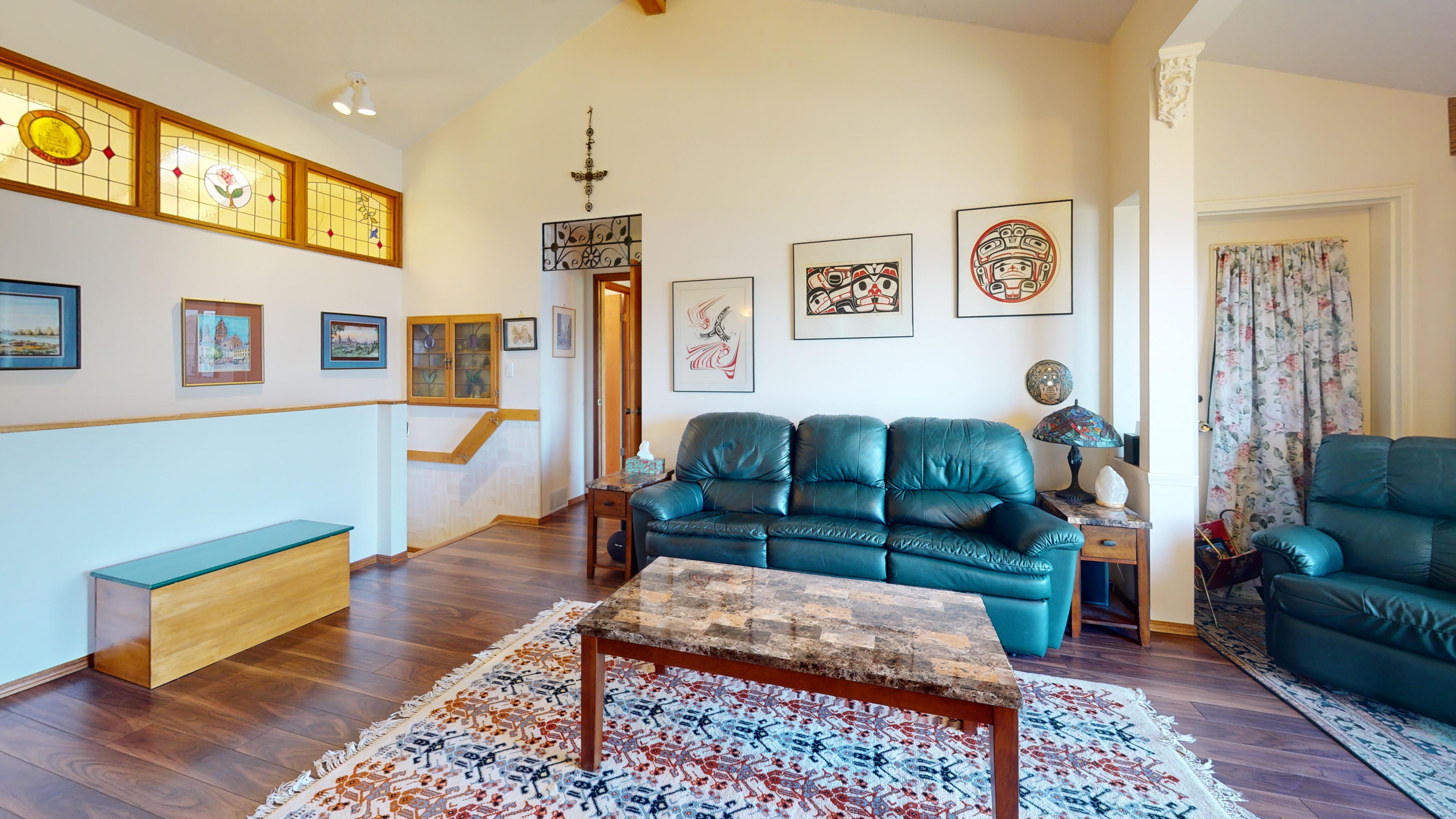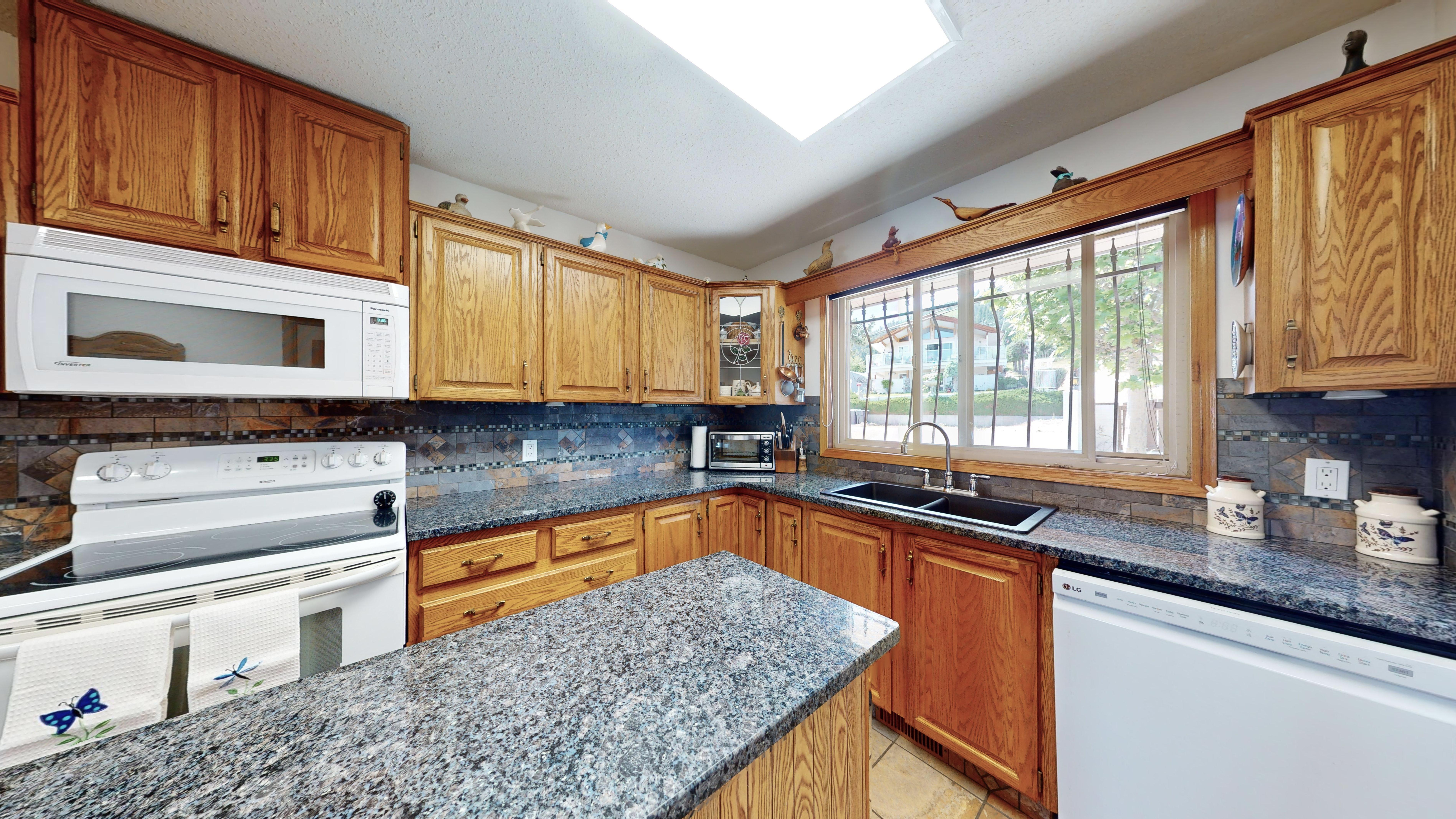 Great lake views looking south towards Penticton. No step rancher walk out with vaulted ceilings, beams and archways & stained glass accents. Well cared for home with pride of ownership and updates over the years, recently new hotwater tank and new air conditioning. There is a private lower side yard gathering area plus the backyard is fully terraced and landscaped with fruit trees and gardens. Closed in court yard at the front of the house for privacy and parking for RV or boat. Parking out front along the road as well. Great neighbourhood on school bus route so plowed first in the winter. That rare combination of a flat driveway with lakeviews!