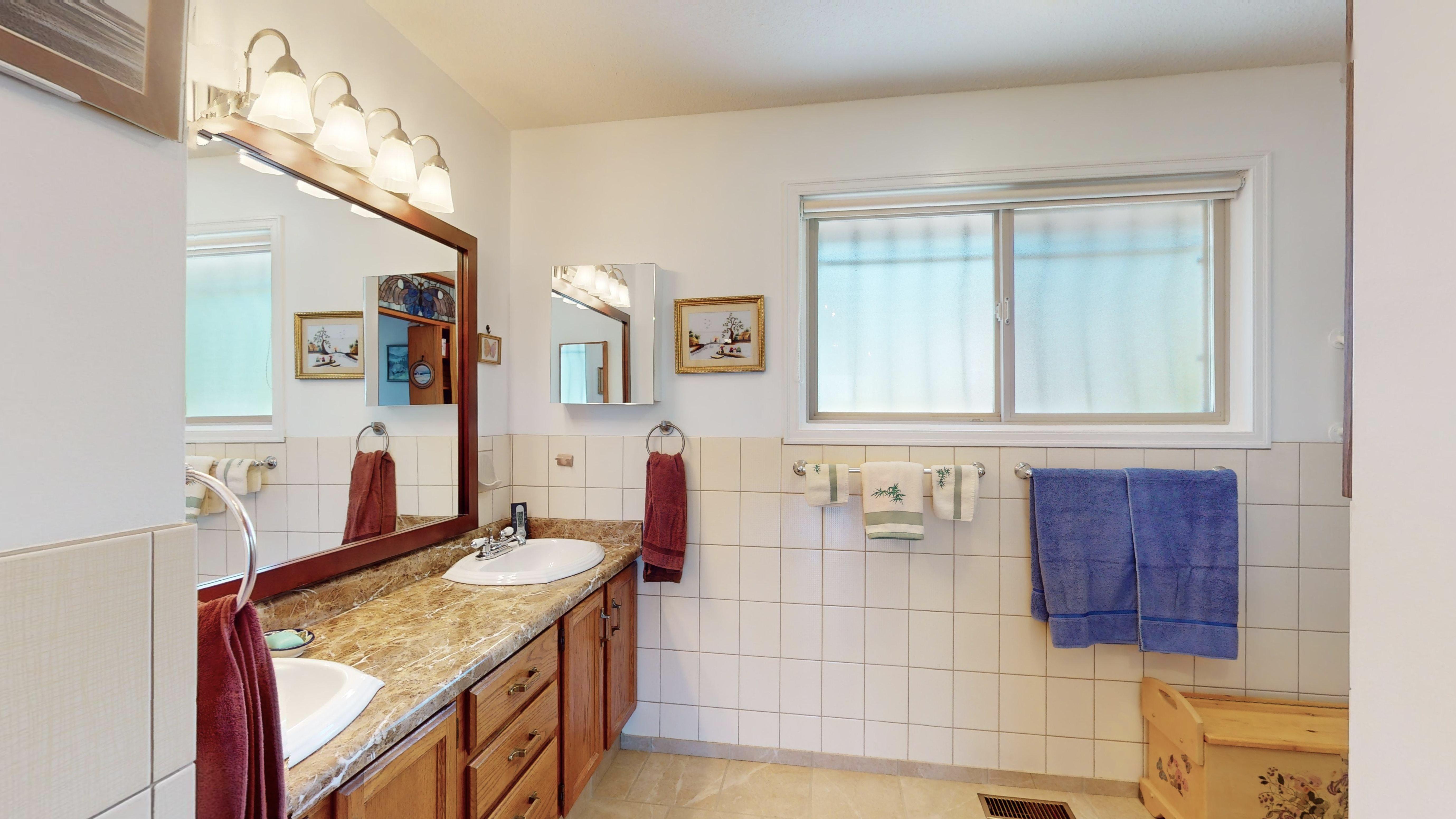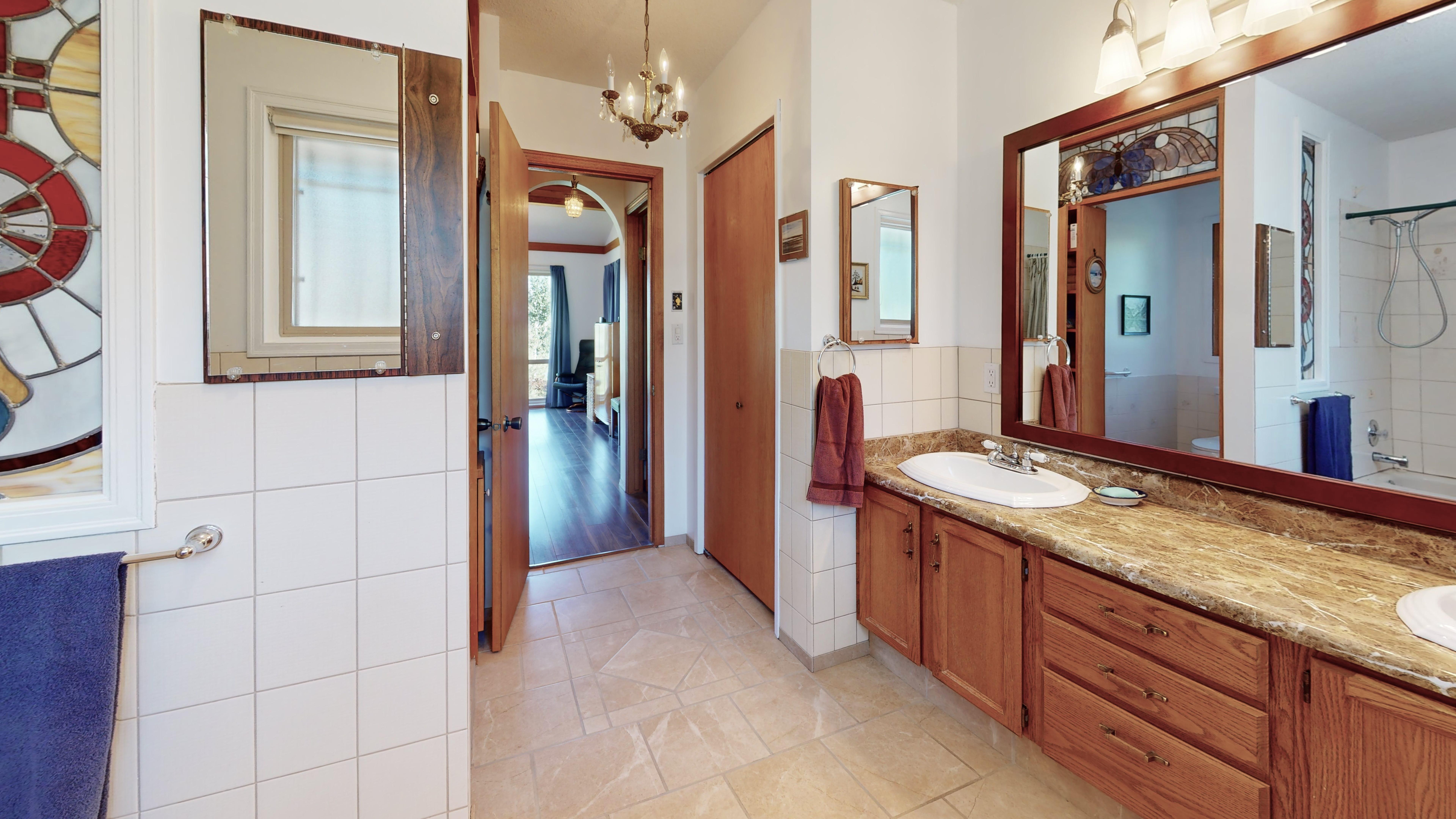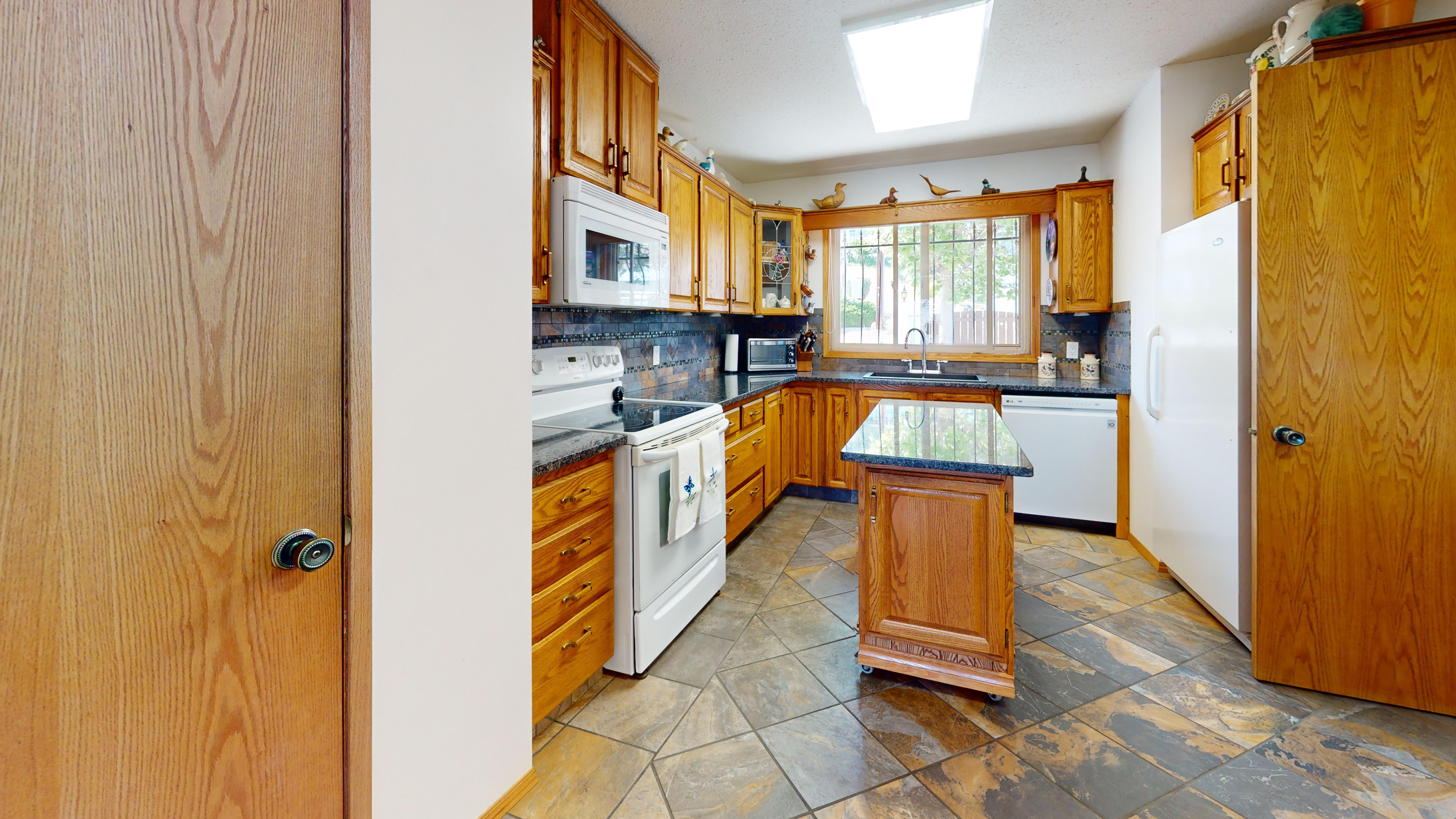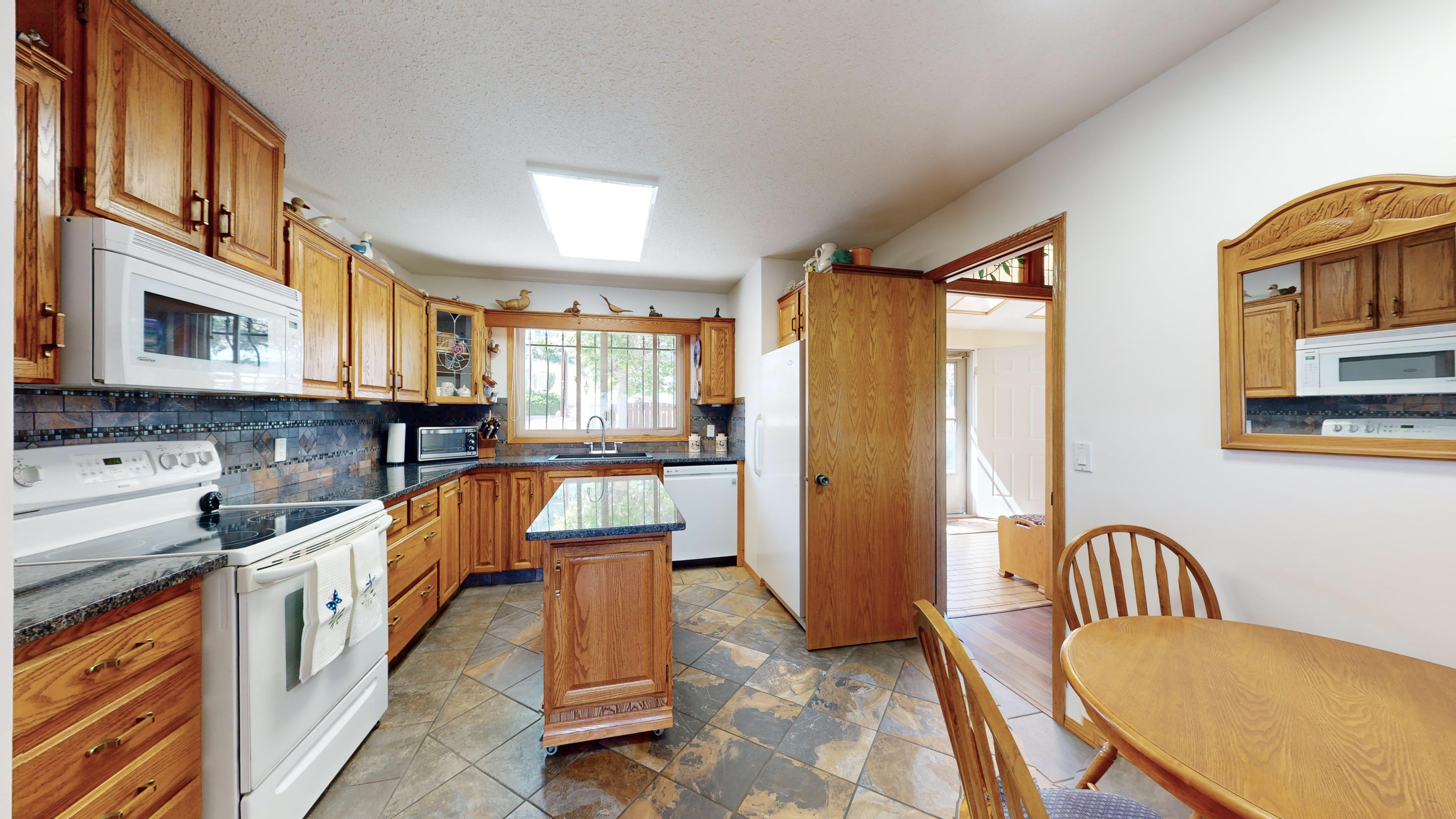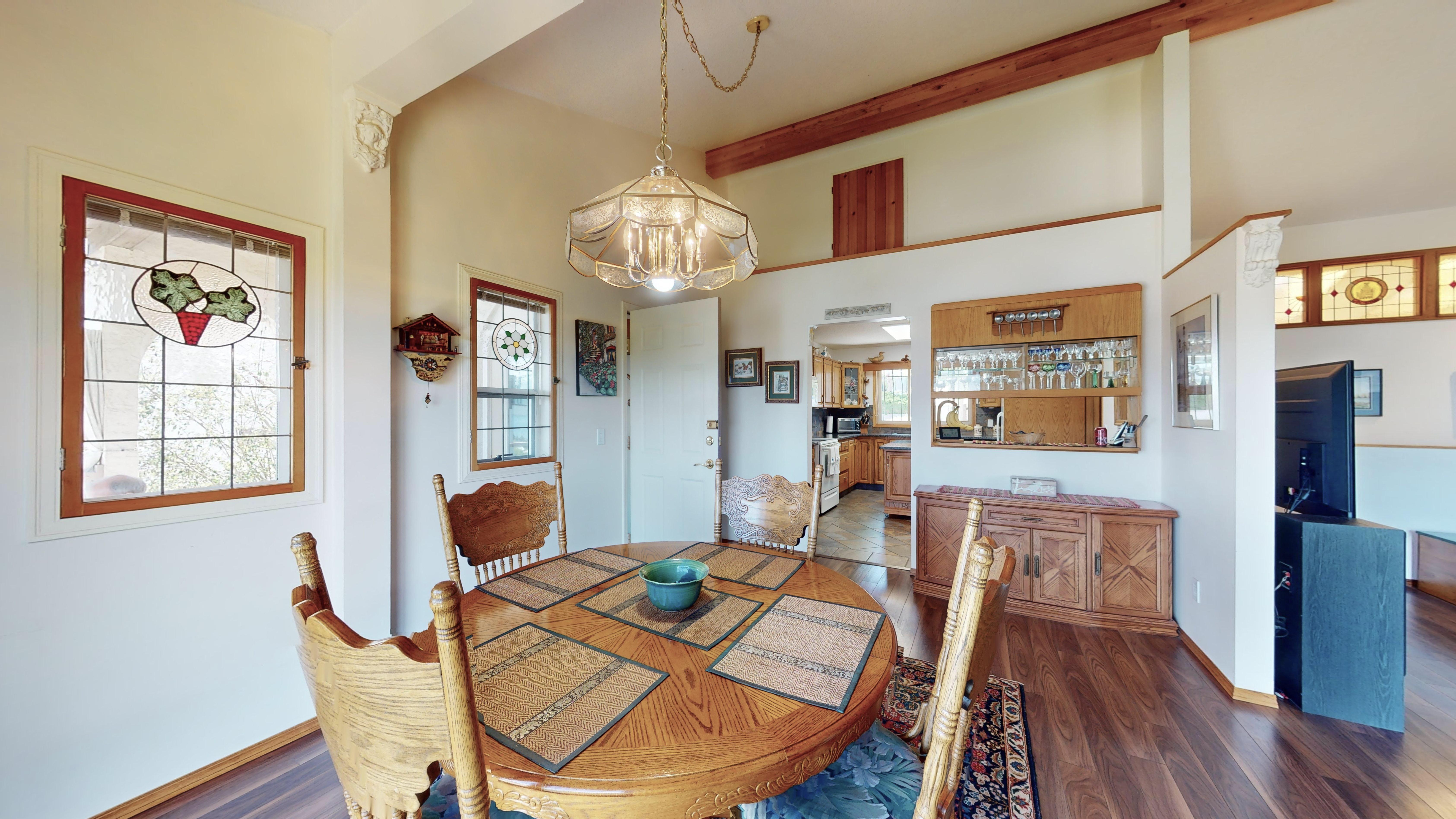 Great lake views looking south towards Penticton. No step rancher walk out with vaulted ceilings, beams and archways & stained glass accents. Well cared for home with pride of ownership and updates over the years, recently new hotwater tank and new air conditioning. There is a private lower side yard gathering area plus the backyard is fully terraced and landscaped with fruit trees and gardens. Closed in court yard at the front of the house for privacy and parking for RV or boat. Parking out front along the road as well. Great neighbourhood on school bus route so plowed first in the winter. That rare combination of a flat driveway with lakeviews!